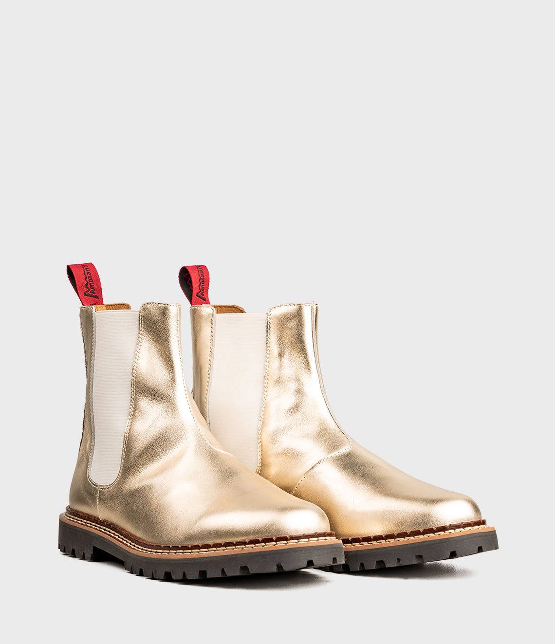 Ein anderes Licht bringt der Iselle-Boot in die Kollektion, der Glamour nicht als Übertreibung versteht, sondern als feine Nuance. Gold, Rot, Schwarz oder Ecru – Naplack, das im Winterlicht schimmert wie gefrorener Tau. Es ist ein Modell, das elegant leuchtet, ohne in Konkurrenz zur Trägerin zu treten. Ein Wintermoment, eingefangen in Form eines Schuhs.