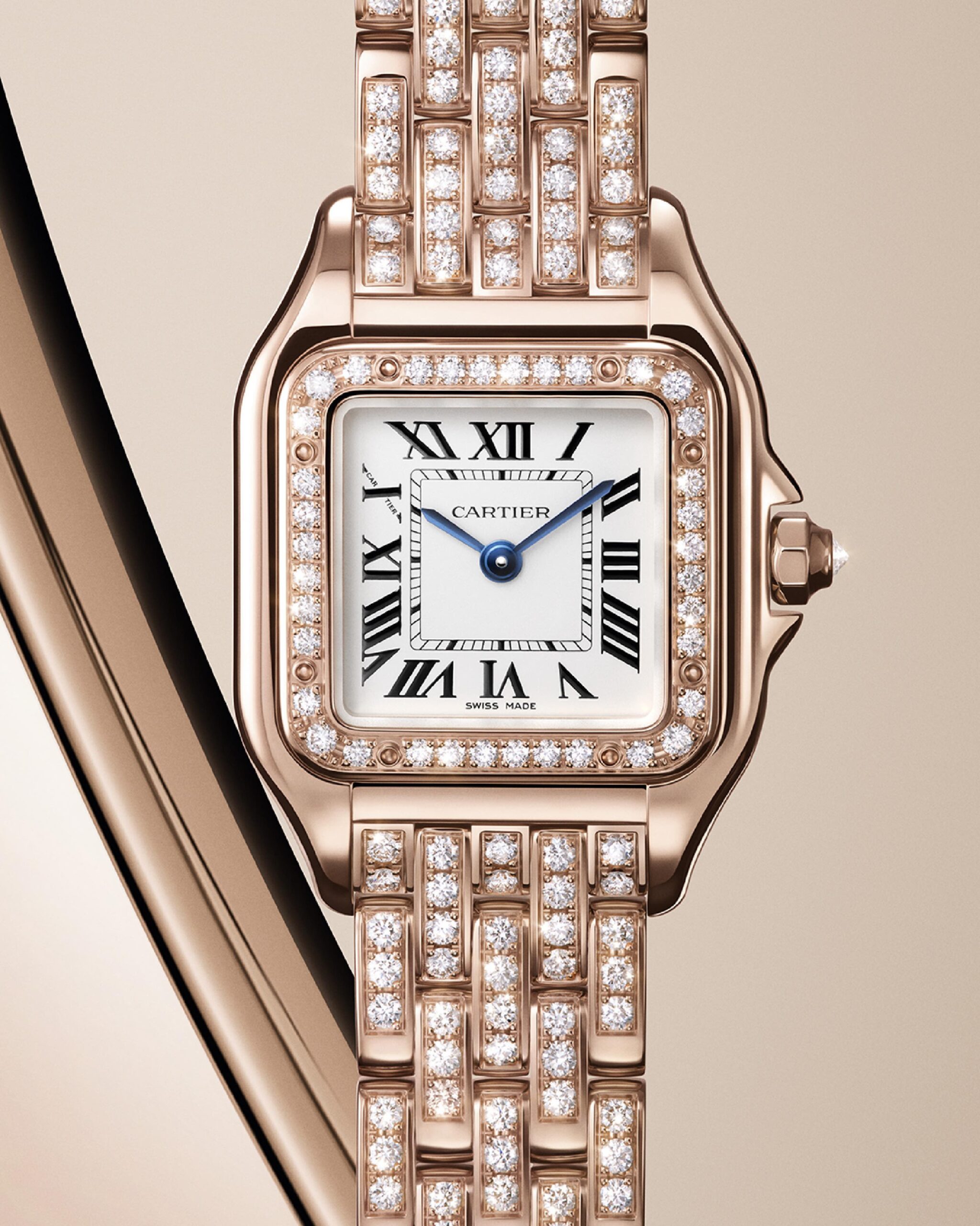 Beispielsweise stellen die Uhrmacher:innen und Kunsthandwerker:innen der Maison den Panther in einem faszinierenden Face-to-Face-Design einer kostbaren Uhr gegenüber. Oder sie erfinden die grossen Uhrenklassiker der Maison neu. Ich denke da zum Beispiel an die Panthère Uhr,