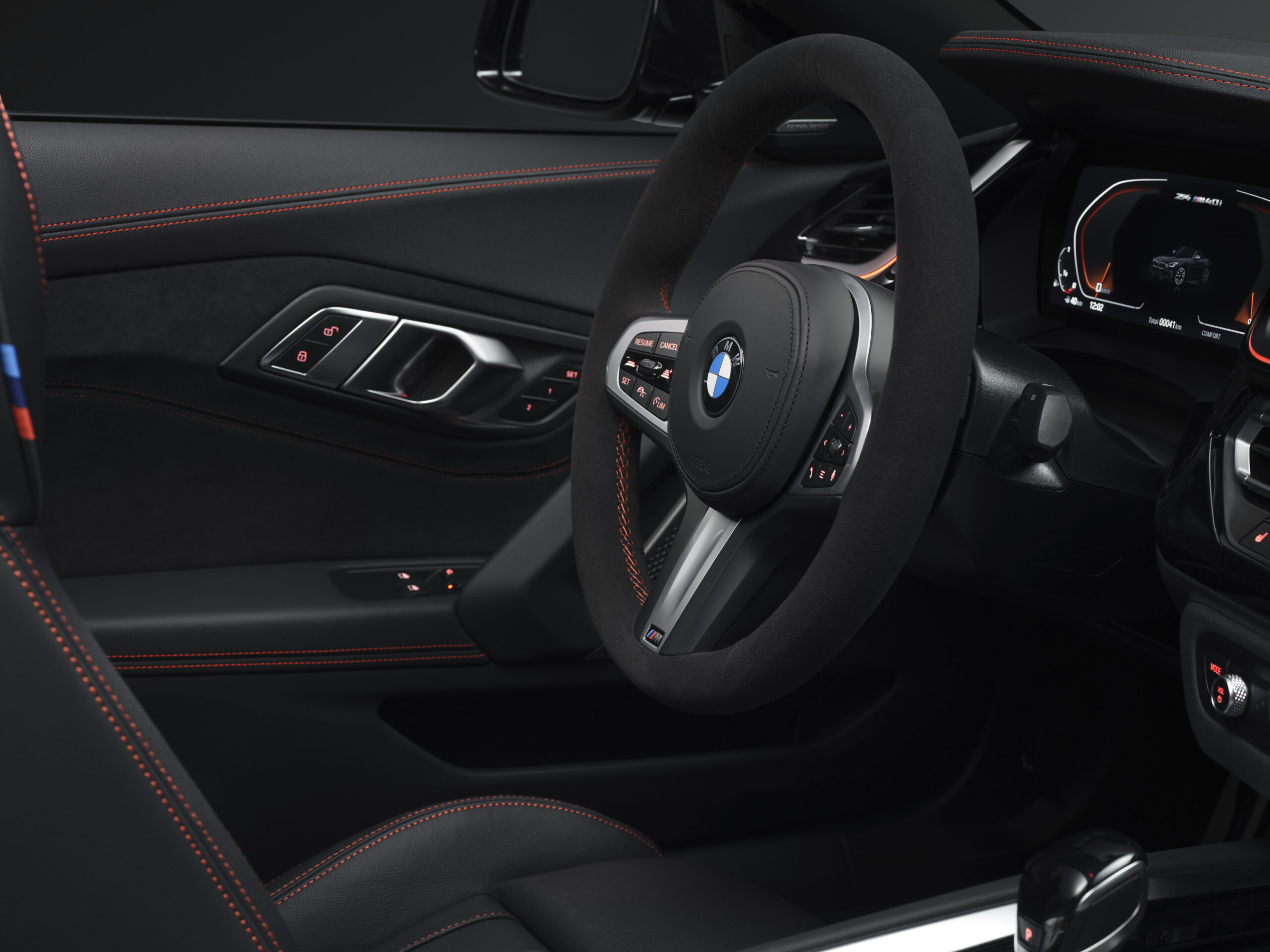 Im Interieur ziehen sich die markanten, exklusiv für die Final Edition gewählten Kontrastnähte wie der sprichwörtliche rote Faden durch die Instrumententafel, die Mittelkonsole, die Türverkleidungen und auch die M Sportsitze in Leder Vernasca/Alcantara. Ein weiterer attraktiver Blickfang ist das M Alcantara Lenkrad mit Kontrastnähten in der gleichen Farbe. Es unterstreicht perfekt den sportlichen Charakter der BMW Z4 Final Edition, während spezifisch gravierte Einstiegsleisten den Aspekt der Exklusivität verstärken.