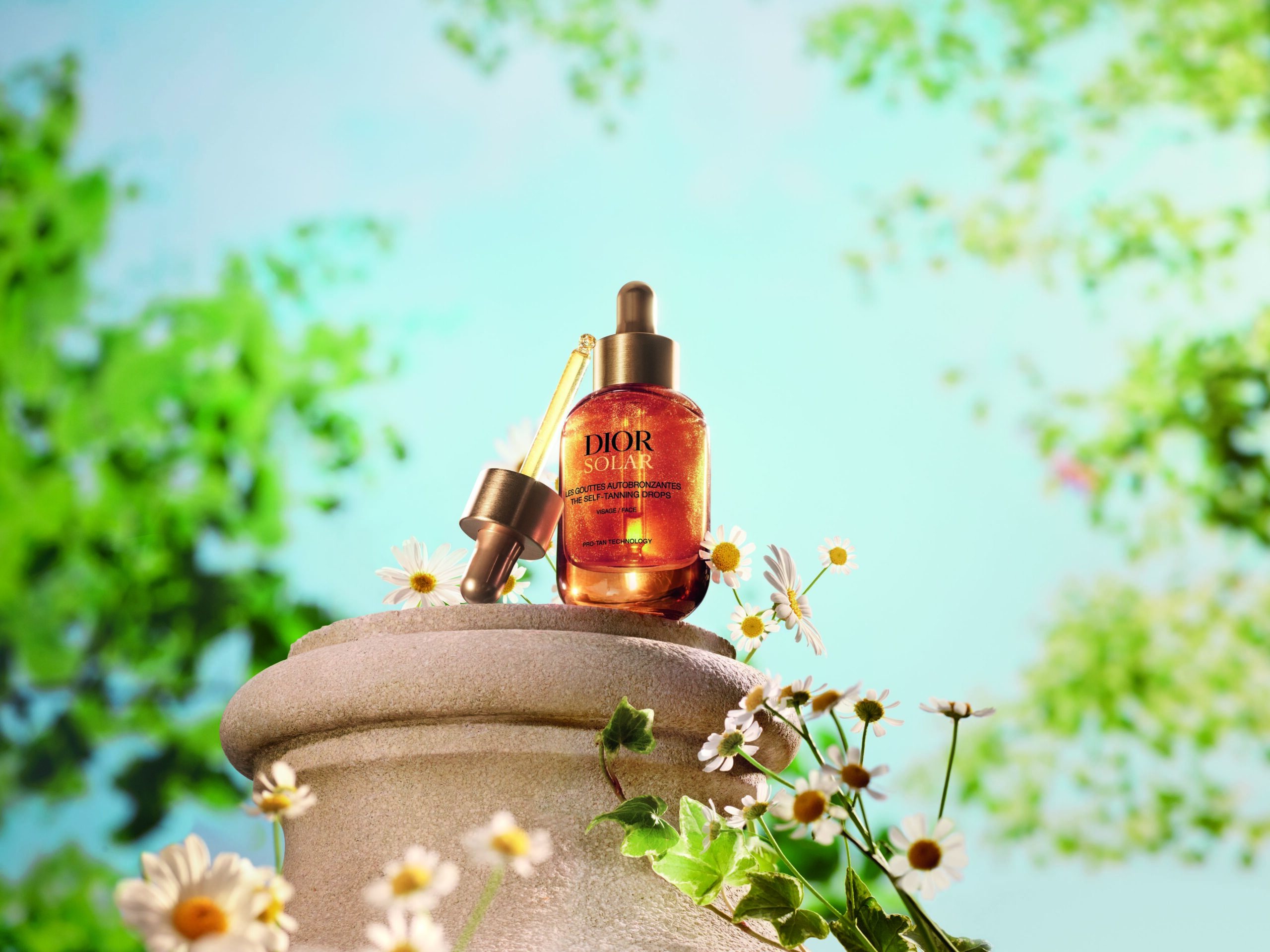 Das Herzstück der Dior-Solar-Linie ist die exklusive Pro-Tan Technology, die die Melaninproduktion der Haut gezielt unterstützt. Zwei pflanzenbasierte Aktivstoffe stehen dabei im Fokus: