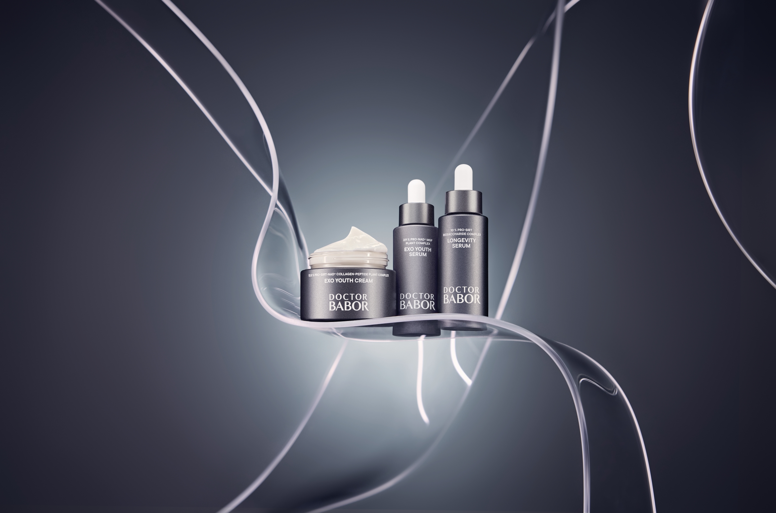 Darüber hinaus setzt DOCTOR BABOR PRO auf eine einzigartige Kombination von Haut-Aktivatoren: Exosomen dienen als Schlüsselmoleküle der Zellkommunikation und sind entscheidend für Regeneration und Jugendlichkeit. Sirtuine, die sogenannten „Longevity-Proteine“, stimulieren die Kollagen- und Elastinbildung und fördern so Straffheit und Elastizität. NAD⁺, ein zentrales Coenzym für die Energieproduktion in den Zellen, verlangsamt die Hautalterung und stärkt die Widerstandskraft.