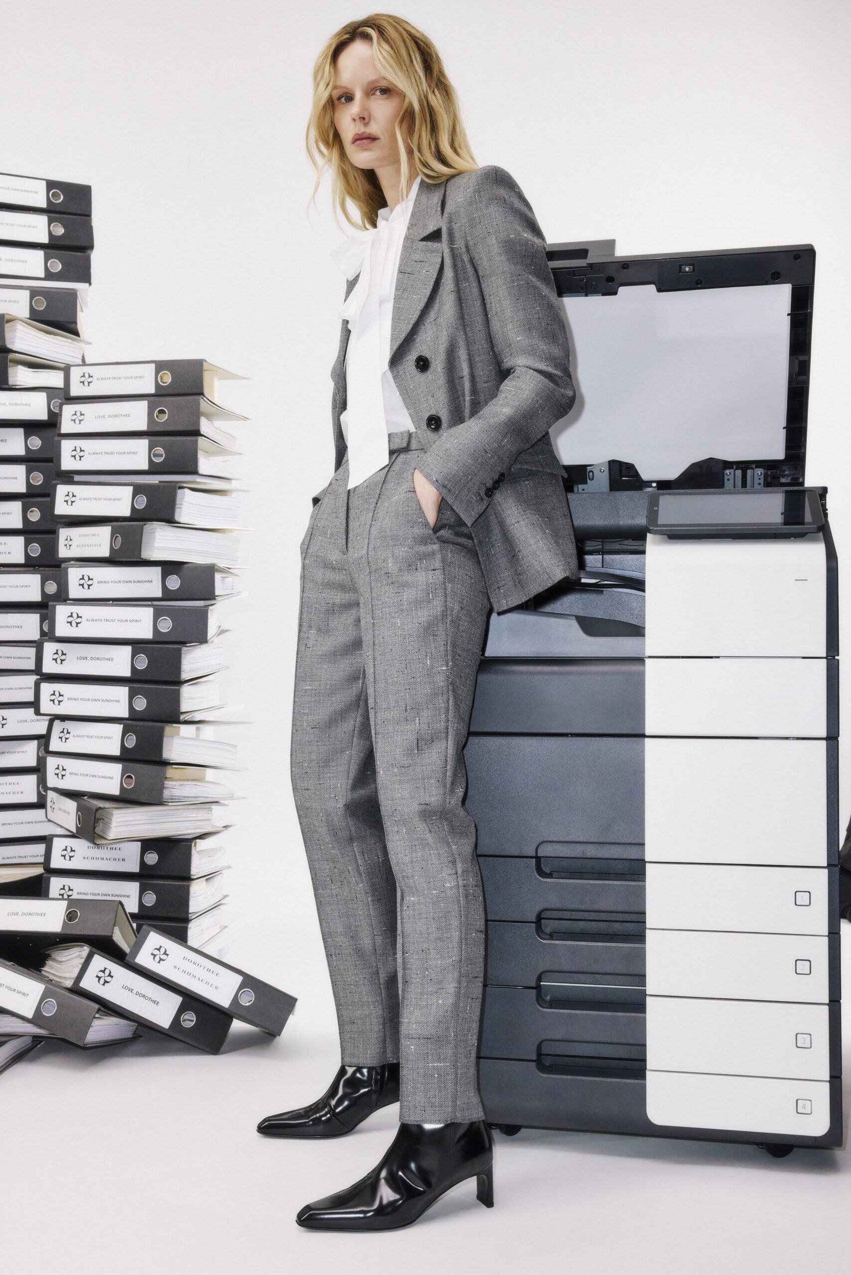 Im Fokus der Kollektion stehen lange Scarf-Details, die Dresses, Blusen und Tops umspielen und Bewegung in die klaren Linien bringen. Das neue Suiting zeigt sich vielseitig: Kombinationen in Salt & Pepper oder White Chocolate & Cacao Nibs lassen sich mühelos vom Office bis zum Dinner tragen.