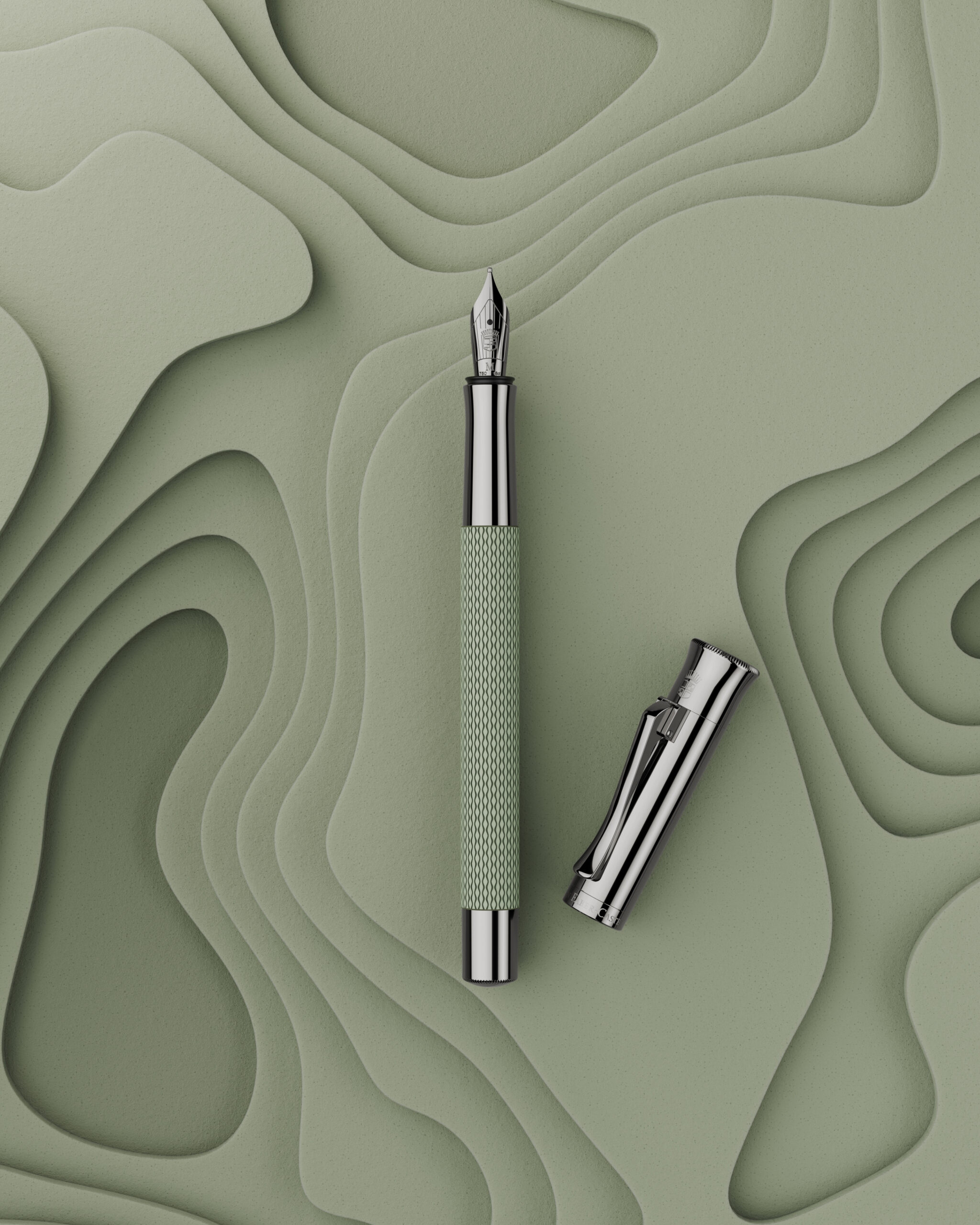 Die Freude an Farbe, Ruhe und Balance zu zelebrieren, gelingt mit von der Natur inspirierten Nuancen auf stilvolle und schönstmögliche Art. Ebenso organisch wie edel wirkt Sage Green – ein dezentes, frisches Grün, das je nach Lichteinfall und Perspektive auch Noten von hellem, mattem Grau aufweist. Damit ist es der perfekte Farbton für die zeitlos elegante Guilloche Schreibgeräte Edition von Graf von Faber-Castell.