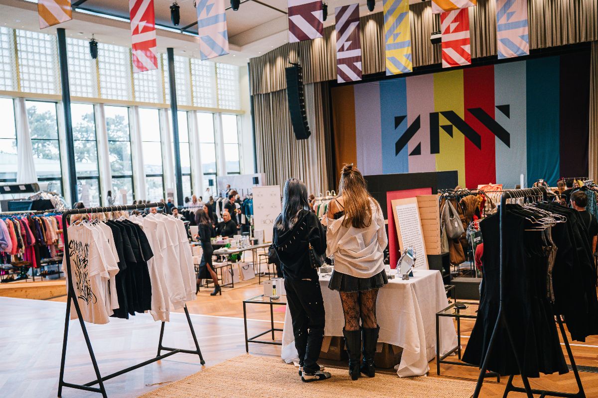 Ein begleitender Pop-Up-Market ermöglichte es teilnehmenden Designer:innen, ihre Kollektionen direkt vor Ort zu präsentieren und zu verkaufen. Damit wurde ein bewusst niederschwelliger Zugang geschaffen und der Dialog zwischen Kreativschaffenden und Konsument:innen gestärkt