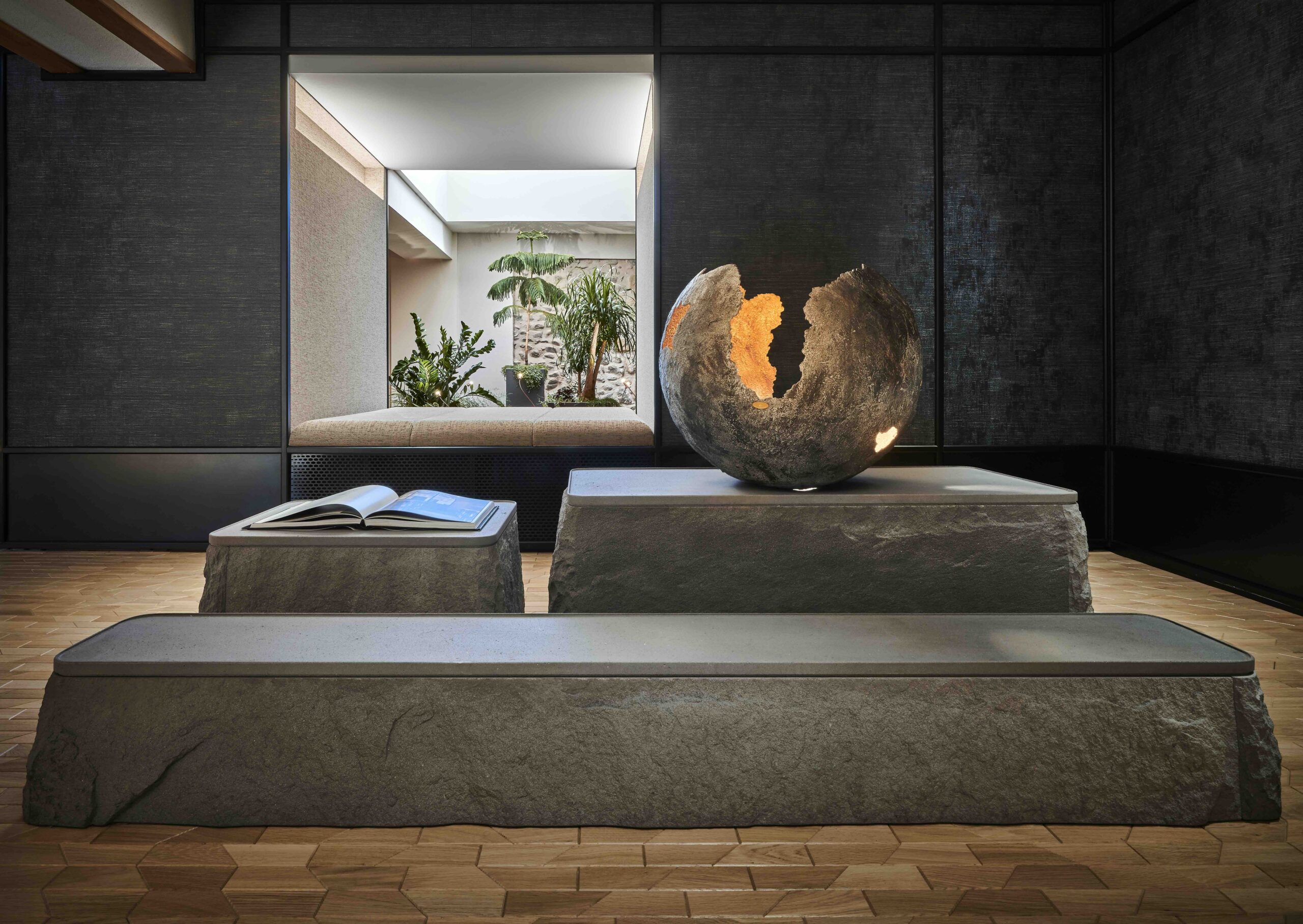Bei der aufwändigen Restaurierung arbeiteten die Delions mit dem Designstudio Jouin Manku zusammen, welches bereits für Alain Ducasse im Plaza Athénée tätig war. Die Handschrift des Duos ist im gesamten Haus spürbar – von der stilvoll gestalteten Kapelle „La Chapelle“, die mit viel Respekt vor ihrer spirituellen Bedeutung inszeniert wurde, bis hin zur Atmosphäre der Bar Saint-Jean, die mit Volvic-Stein, hellem Holz und sanften Formen eine harmonische Verbindung zur Region und ihren vulkanischen Ursprüngen schafft.
