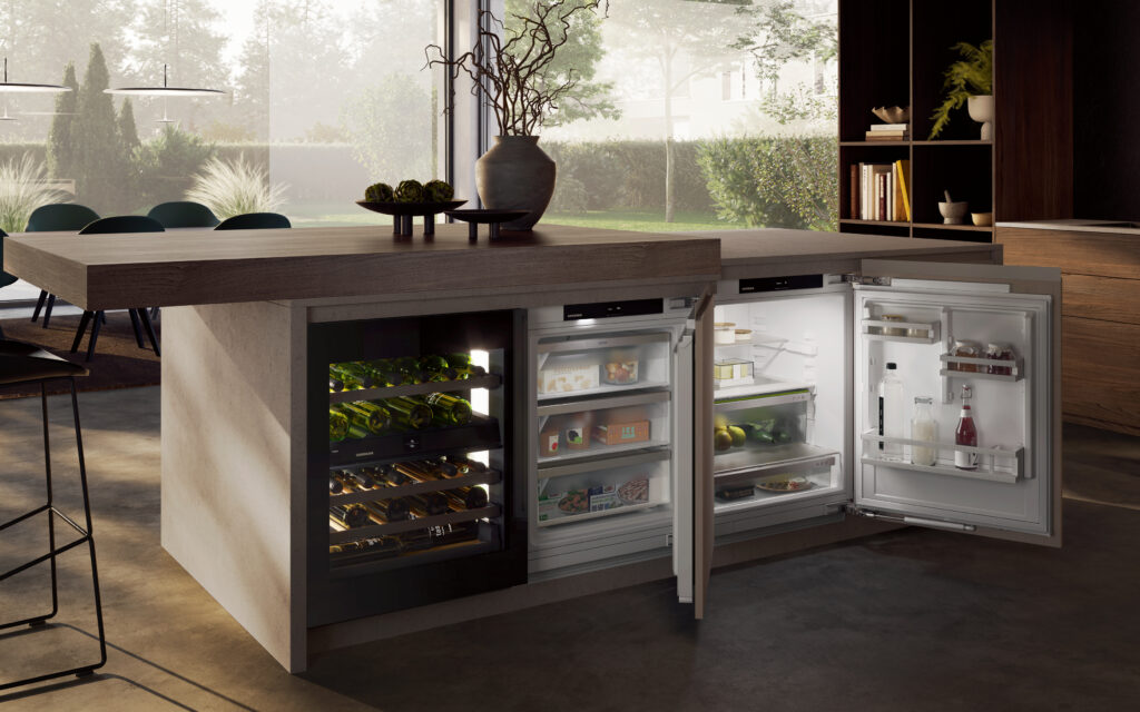 Für die flexible Einrichtung im Wohnraum hat Liebherr ein Unterbau-Kühlgerät mit ausziehbaren Schubladen sowie ein Gefriergerät mit ergonomisch erreichbaren Schubfächern entwickelt. Neu hinzu kommt ebenso ein dekorfähiger Unterbauweinkühlschrank der Serie Vinidor Selection. Konzipiert sowohl für die Höhe 82 bis 88 cm als auch 86 bis 92 cm bei höheren Arbeitsplatten, kann er bis zu 38 Weinflaschen fassen und diese unter optimalen Bedingungen aufbewahren.