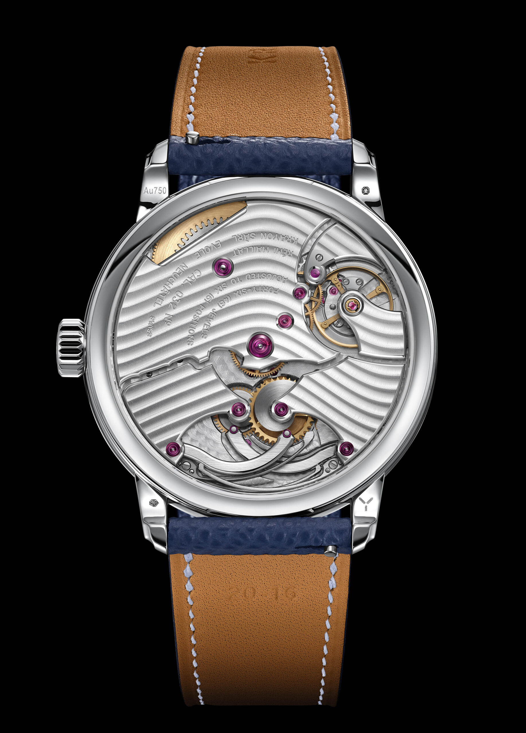 Das mechanische Herzstück der Uhr besteht aus 378 sorgfältig gefertigten Komponenten und integriert zwei bahnbrechende Nocken. Eine von ihnen speichert über den Tag hinweg Energie, um um Punkt Mitternacht das Datum in einem Bruchteil einer Sekunde weiterspringen zu lassen. Eine zweite steuert den nahtlosen Monatswechsel. Für Monate mit weniger als 31 Tagen genügen lediglich fünf jährliche Korrekturen per Krone.