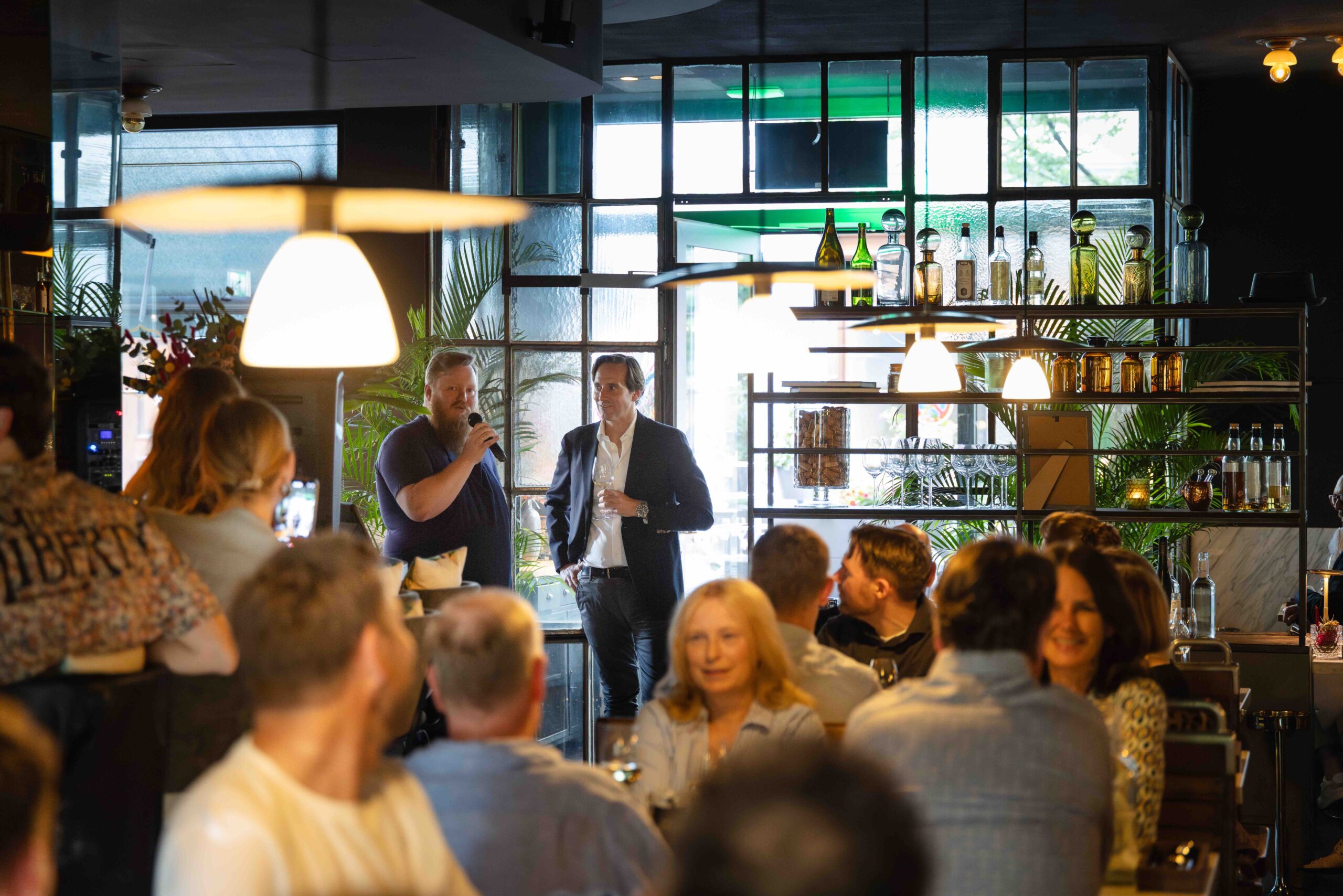 Kulinarisch spiegelte das Menü das moderne Brasseriekonzept wider. Jedes der vielfältigen Gerichte spielt mit seinem Twist aus Süsse, Säure und Schärfe. Nur eines der vielen Highlights: Riesengarnele mit weissem Spargel, Estragon und Bouillabaissesauce, kombiniert mit Tonneau Weissburgunder. Dazu gesellten sich unter anderem Schweinebauch mit Räucheraal, Chinakohl und Entenleberjus sowie ein Fromage Blanc AOC mit Blaubeeren und Zitronenmyrthe. Ergänzt wurde das Menü durch ausgewählte Vintages, Chardonnays, eine Auslese Riesling sowie eine alkoholfreie Linie aus dem Hause Dreissigacker.