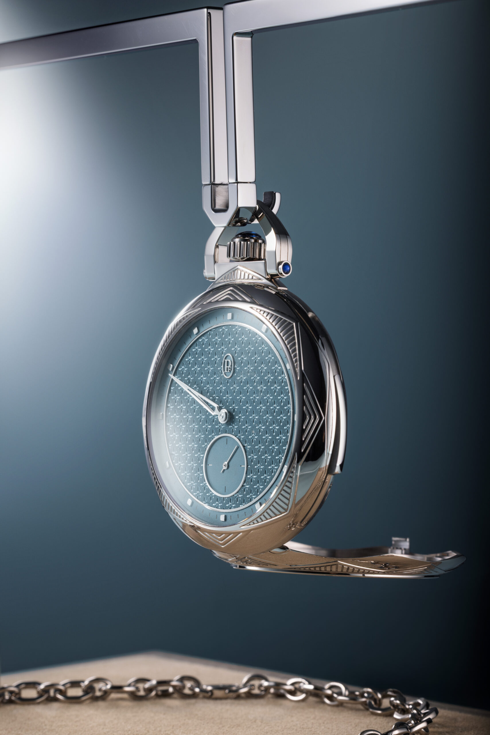 Die Ausführung als Lépine-Taschenuhr verstärkt die künstlerische Wirkung, denn das grosszügige Format bietet Klarheit und Raum für die volle Ausdruckskraft der Métiers d’Art. Gravuren, Marketerien und Steinarbeiten entfalten ihre Ästhetik auf den Oberflächen, die speziell für sie gestaltet wurden.