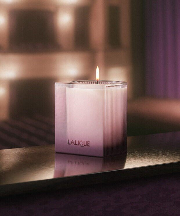 Das gerillte Glas zitiert das Art Deco Erbe der Maison und erinnert an die skulpturale Eleganz ikonischer Lalique Kreationen. Symmetrische Vertiefungen fangen das Licht ein und verteilen es sanft im Raum. Ein satiniertes Finish erinnert an die polierte Oberfläche von Lalique Kristall. Subtile Lichtnuancen deuten die jeweilige Duftwelt an und geben einen sinnlichen Vorgeschmack auf die Geschichte, die jede Kerze erzählt.