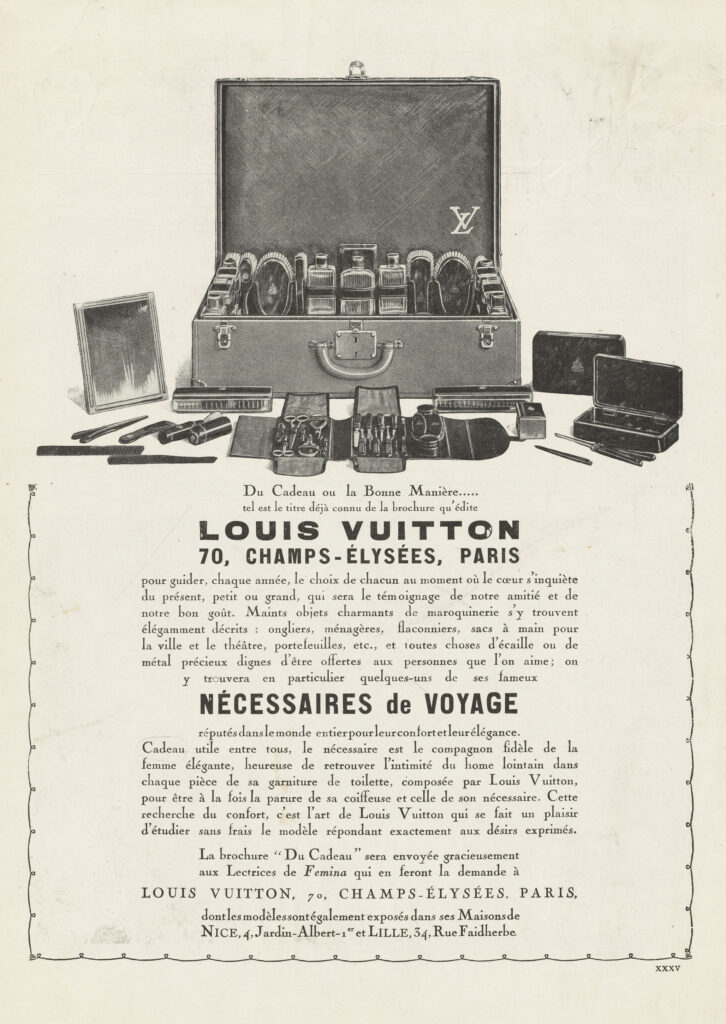 In den 1920er Jahren entwarf Louis Vuitton luxuriöse Puderdosen, Pinsel und Spiegel. Zwei außergewöhnliche Exemplare, die im Louis Vuitton Archiv aufbewahrt werden, stammen aus dem Jahr 1925: Le Milano war ein maßgeschneidertes Set für die Sopranistin Marthe Chenal, während ein exquisiter Kulturbeutel für den polnischen Komponisten Jan Paderewski angefertigt wurde. Außerdem