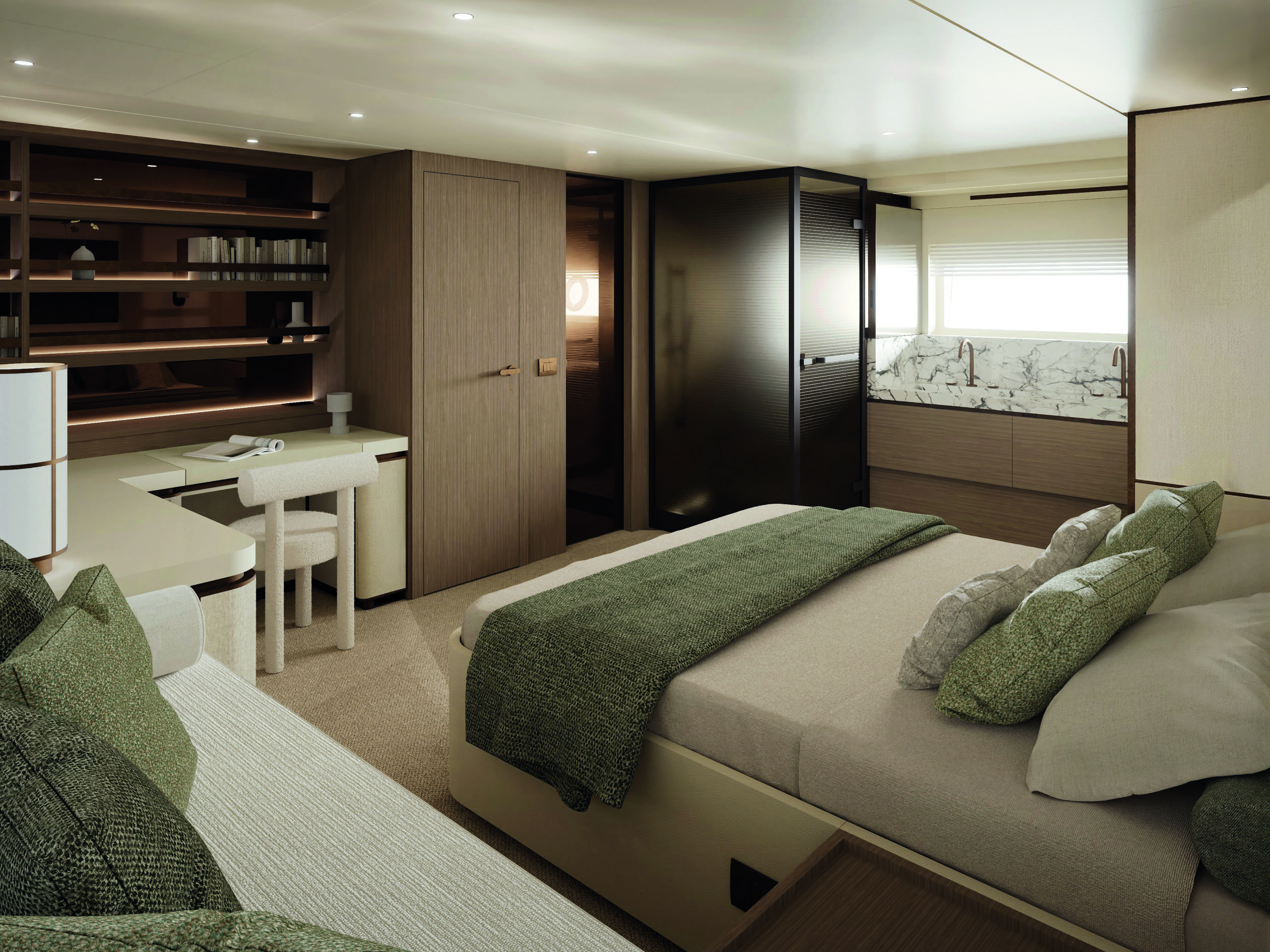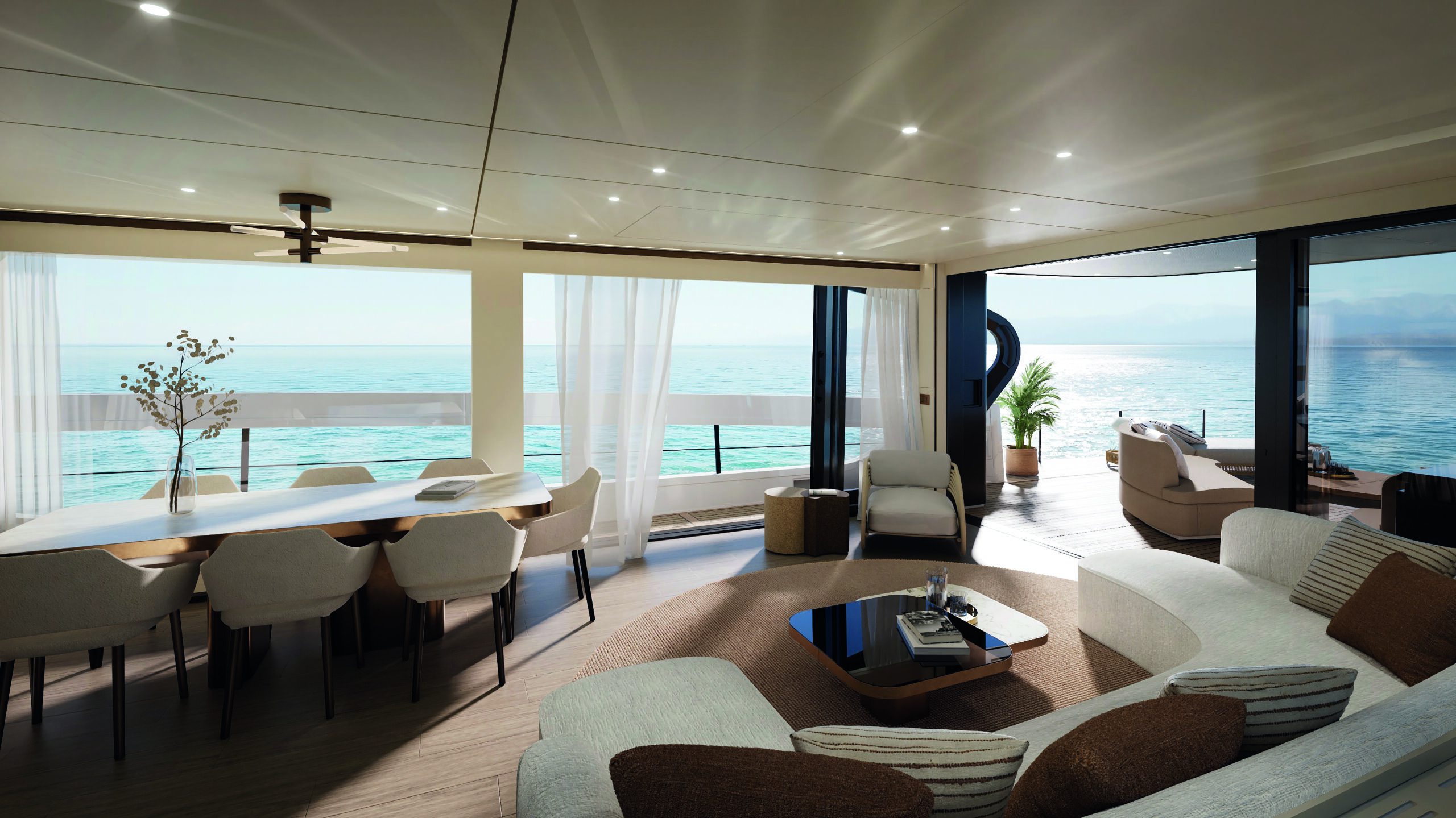 Wie ihre Vorgänger ist diese Yacht mit Hybridantrieb das Ergebnis intensiver gestalterischer Forschung in allen Bereichen: von der räumlichen Organisation über die Materialwahl bis hin zum Gesamterlebnis an Bord.
