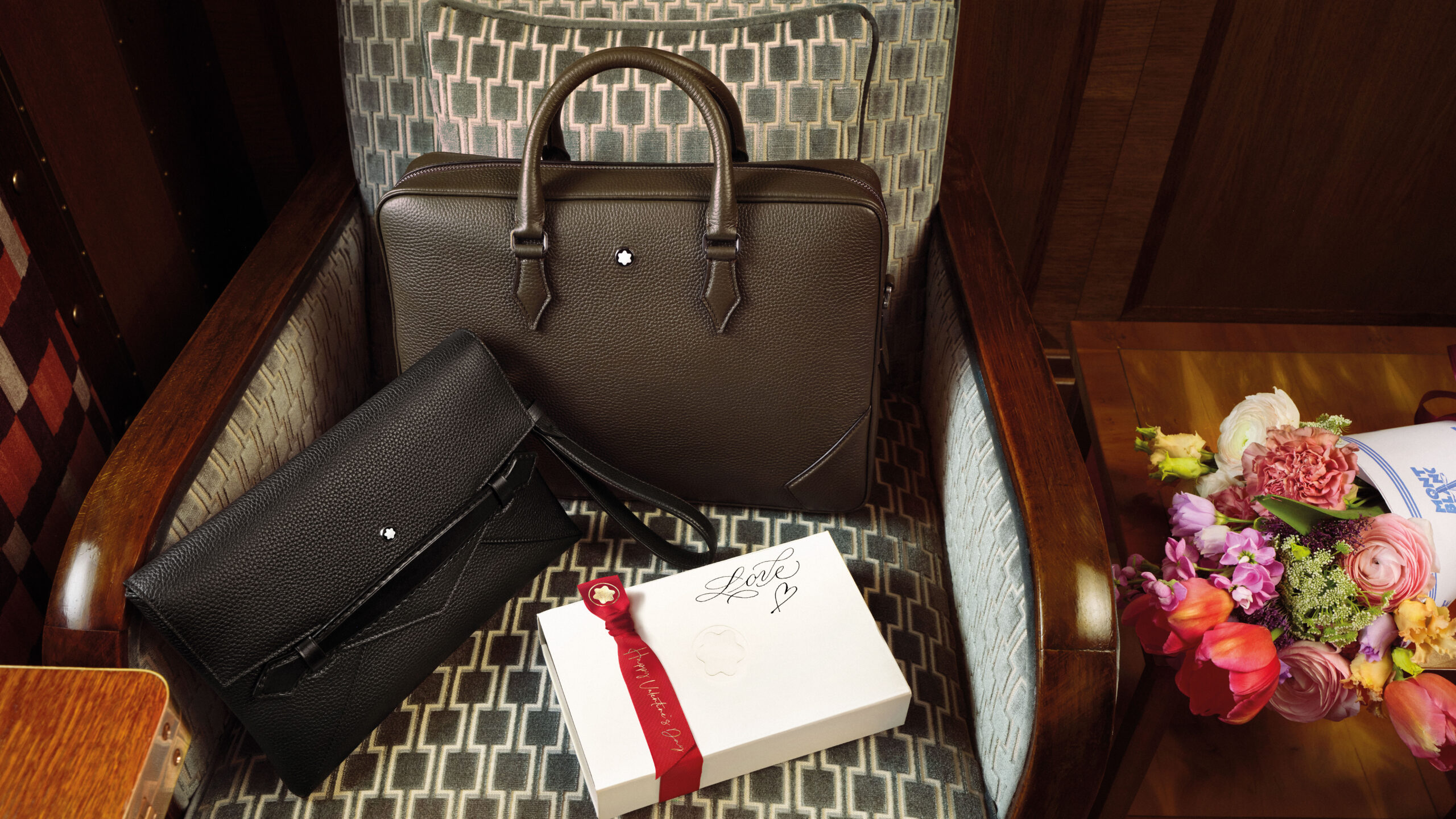 Auch abseits der Schreibgeräte setzt Montblanc auf Begleiter für Alltag und gemeinsame Wege: etwa mit einer Document Case aus khakifarbenem Grain-Leder, einer zweifarbigen Clutch in Tweed Blue/Black aus Sartorial-Leder oder der Companion Envelope Clutch in schwarzem Grain-Leder. Dazu kommen ein Bifold Wallet in Khaki sowie ein Nib Key Holder in schwarzem Meisterstück-Leder.