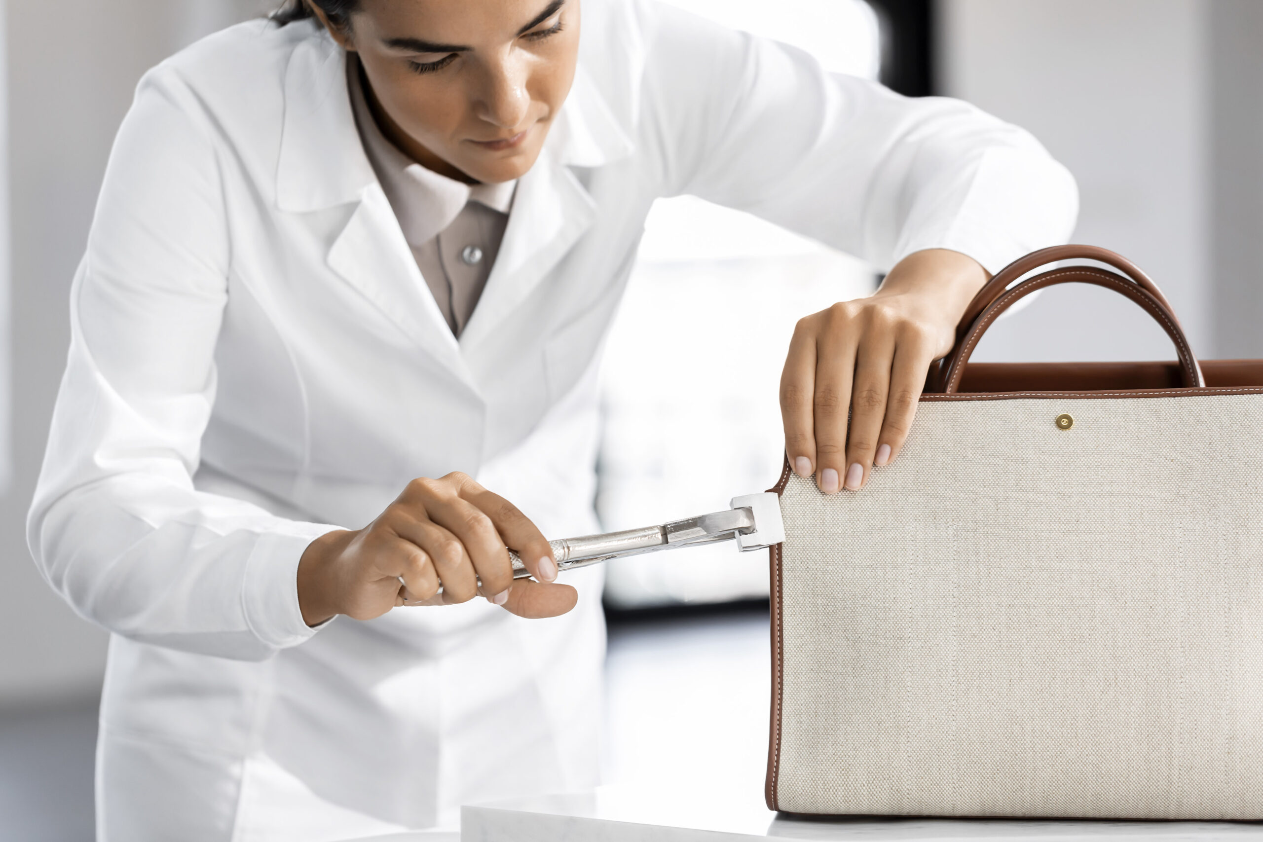 Die Kunsthandwerker des Hauses fertigen die Loom Bag mit höchster Präzision und Liebe zum Detail – vom exakten Zuschnitt des Leders bis hin zu den von Hand bemalten Kanten.