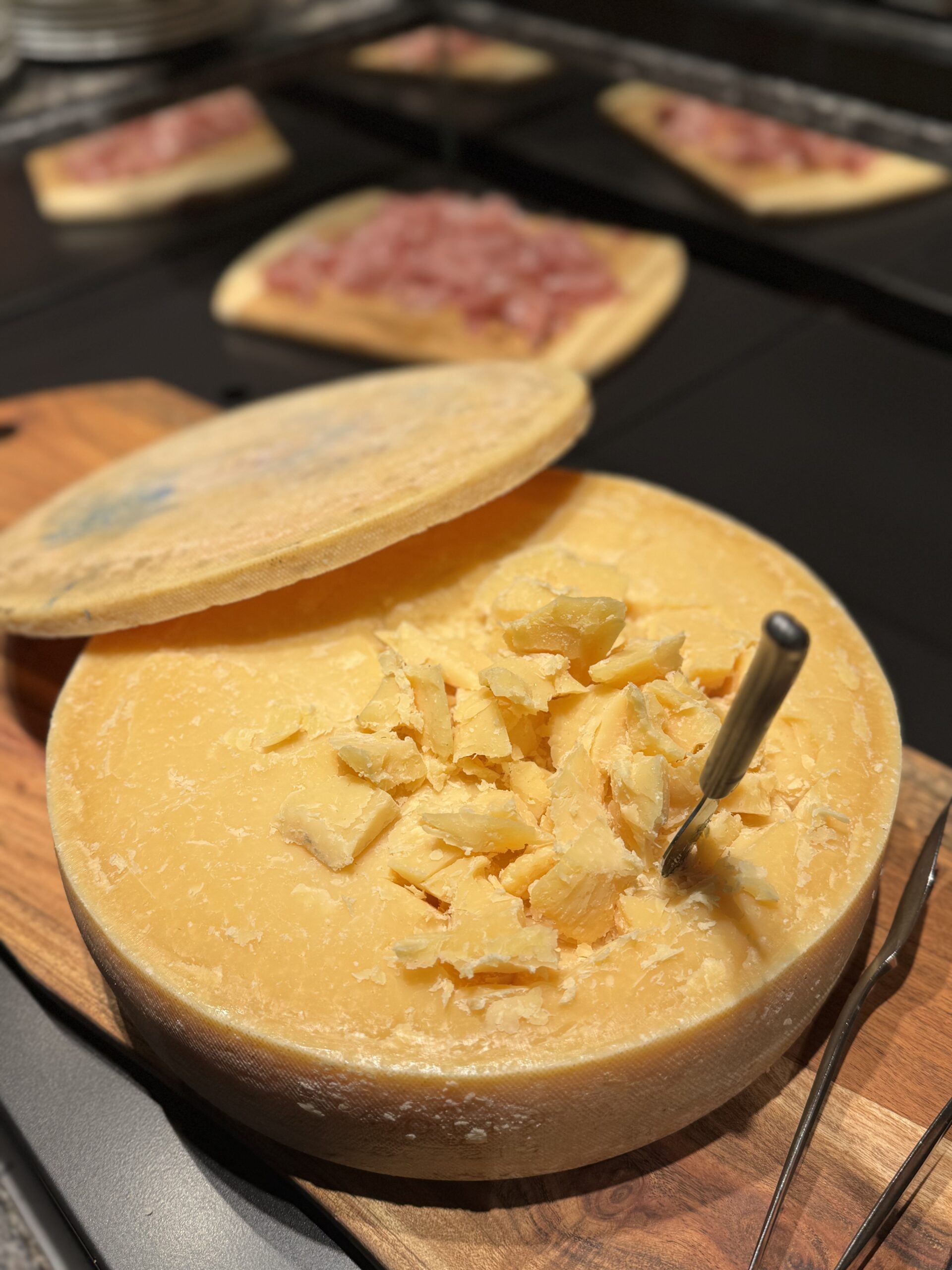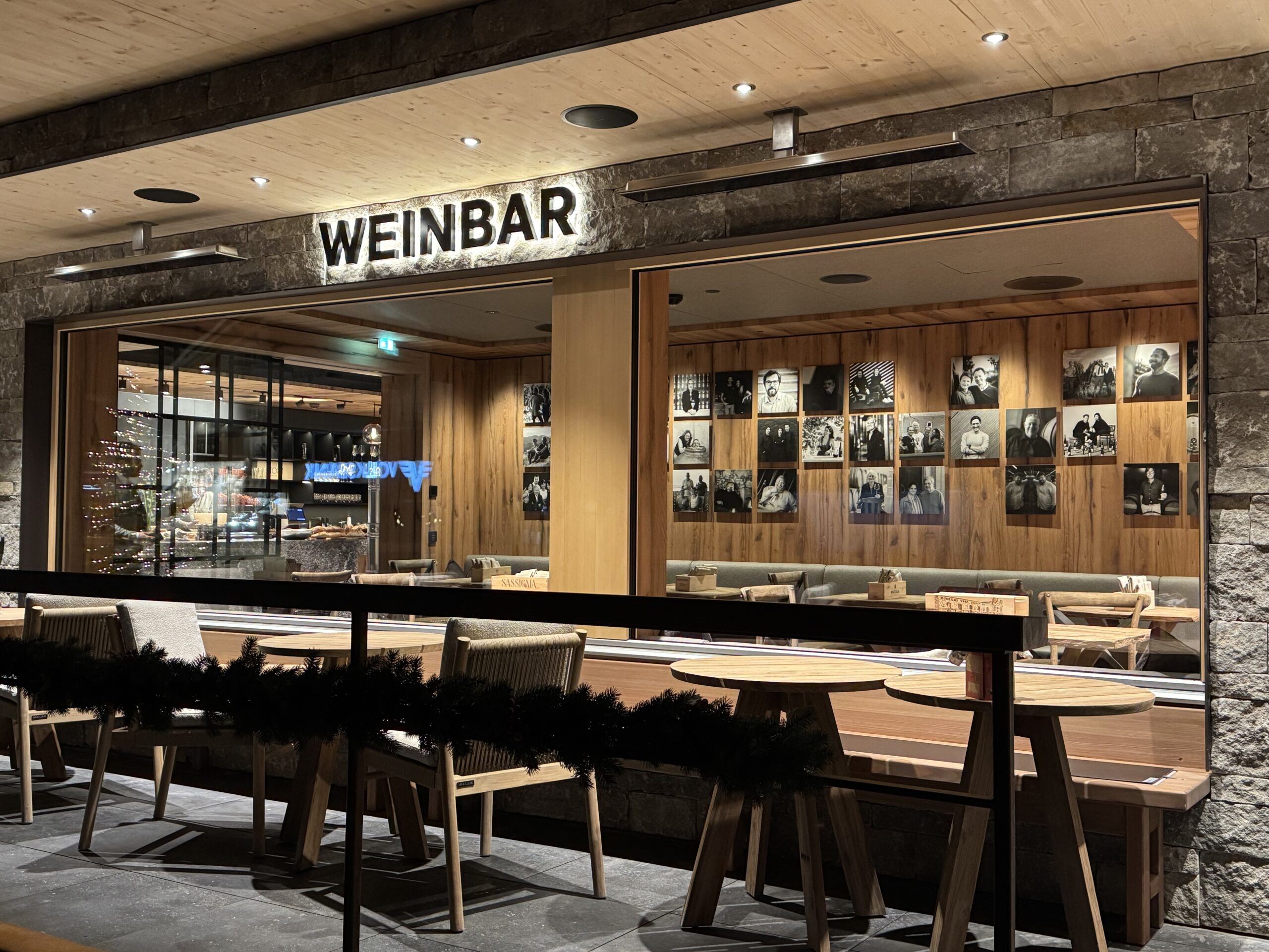 Gleichzeitig ist der Standort intelligent durchdacht: Tagsüber dient der Raum als Backstube mit frischem Brot, Kaffee aus eigener Röstung und kleinen Gerichten, abends begleiten alpine Genussbrote und ein paar warme Specials die Weine – bewusst unkompliziert gehalten. Ein stilvolles Interior, die beheizte Terrasse und die Porträts von 45 Winzer:innen setzen elegante Akzente, ohne vom eigentlichen Highlight abzulenken.