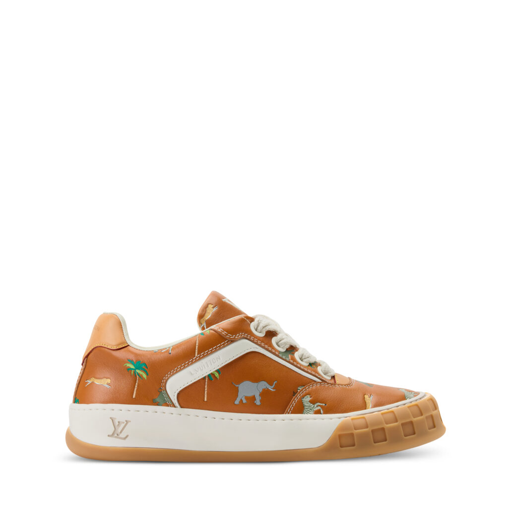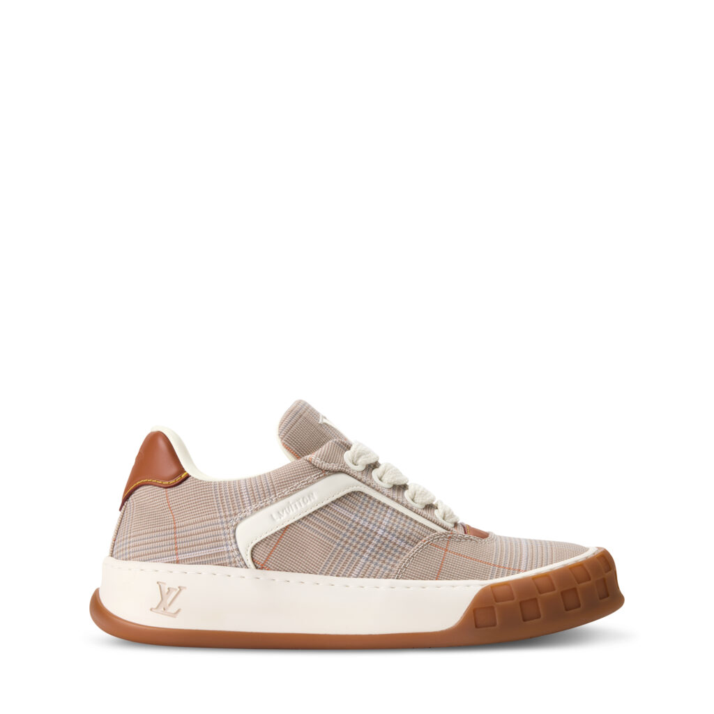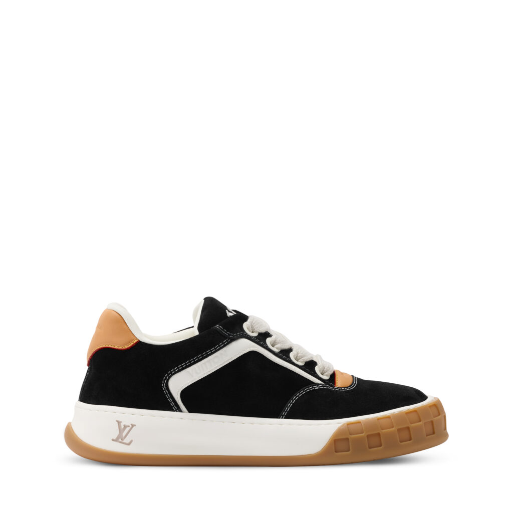 Jeder Sneaker trägt Louis Vuitton-Codes wie das VVN-Leder-Enchape zwischen Zehen und Schnürsenkel und ein neu entwickeltes LV-Logo auf der Sohle. Zusätzliche weiche und leichte Materialien sorgen für Flexibilität und Geschicklichkeit, indem er den LV Tilted als Teil eines Louis-Vuitton-Erbes positionierte, der praktische Sportart kombinierte und grenzenloses Design.