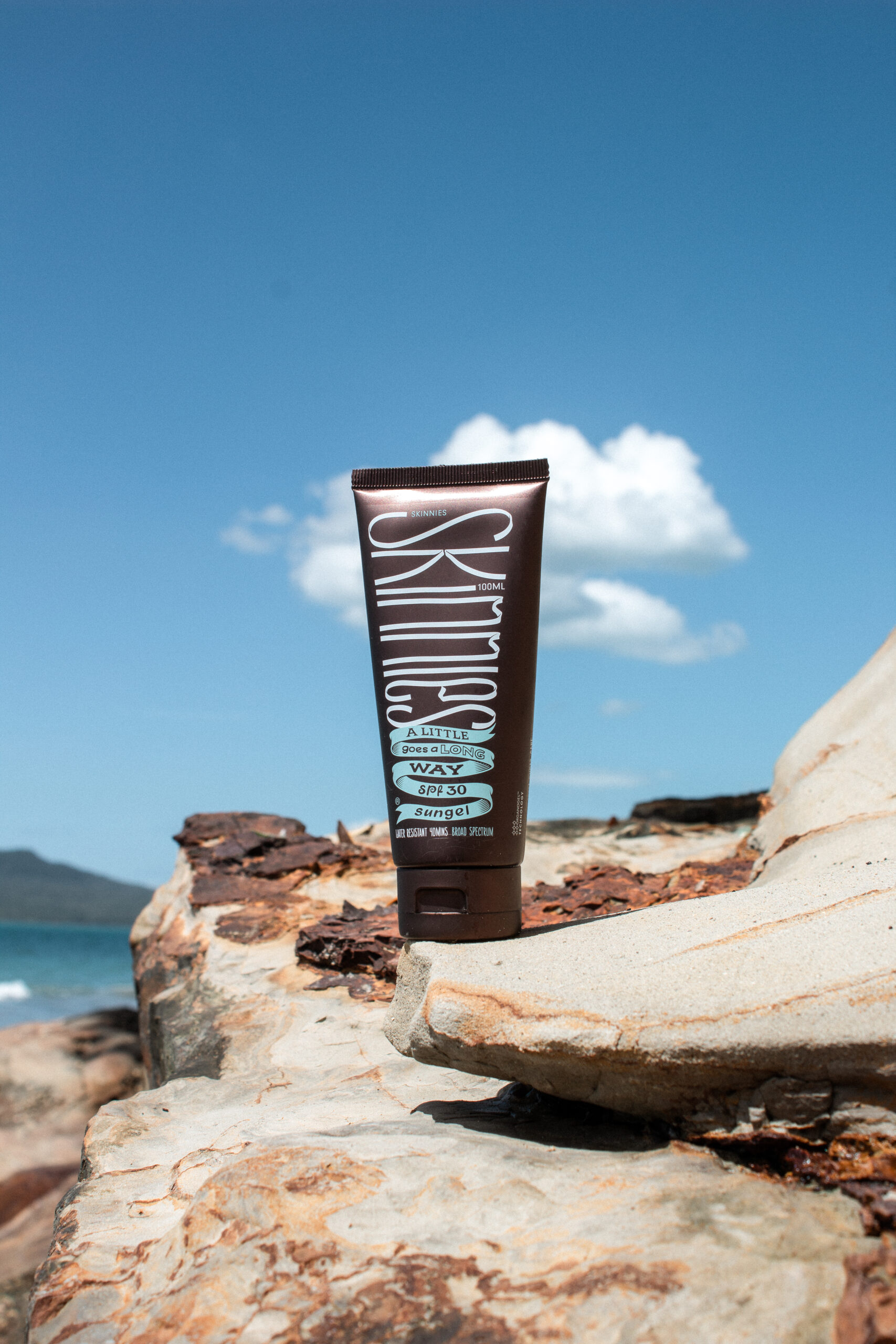 Das beliebte Sonnengel mit SPF30 ist der perfekte Begleiter für den Alltag. Das transparente, hautfreundliche Gel ist frei von Parabenen, Konservierungsstoffen, Emulgatoren sowie Duftstoffen und bietet in Kombination mit Vitamin E einen zuverlässigen Schutz vor den Risiken starker Sonneneinstrahlung. Mit dem Weglassen von Wasser, reicht ein erbsengrosser Tropfen für Gesicht und Hals. Skinnies Sungel hinterlässt keinen Fettfilm und kann problemlos unter jede Art von Make- Up aufgetragen werden, ist in verschiedenen Grössen erhältlich, unter anderem in Apotheken und Drogerien.