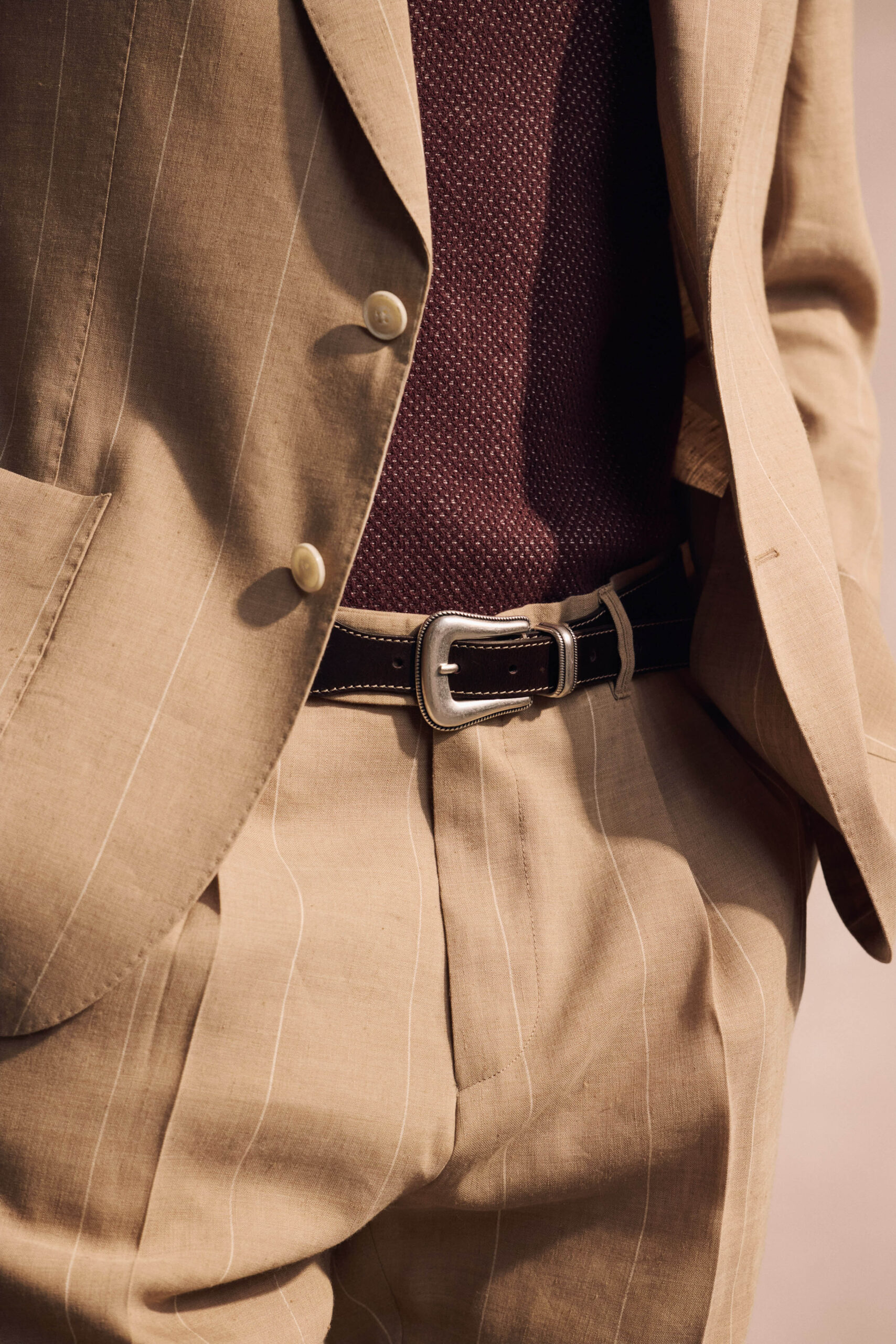 Ein schöner Begleiter auch in dieser Saison bleibt Summer Wool – eine Qualität, die fällt, ohne zu fliessen, und knitterfrei Form bewahrt, ohne steif zu wirken. Sie zeigt sich in Sakkos, Hosen, Strickformen und neuen Hybridmodellen – für Looks, die sich mühelos zwischen Casual und Eleganz bewegen. In verschiedenen Qualitäten und Farbnuancen gedacht, bleibt sie vielseitig im Stil und ruhig im Auftritt.