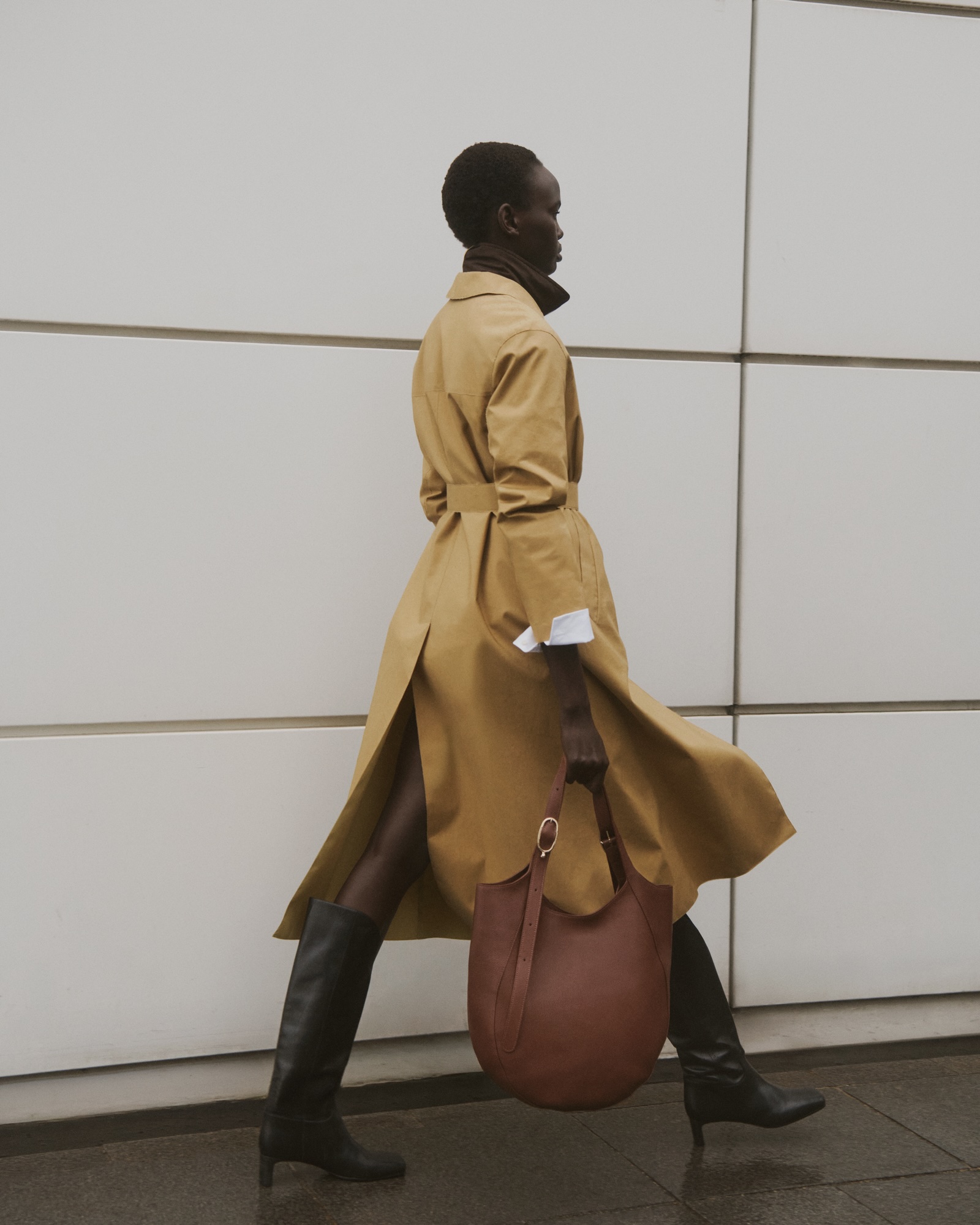 Jedes Modell der Linie, ob sanft gerundete Handtasche oder grosszügige Oversize-Tote, ergänzt die Garderobe stilbewusster Frauen. Sie schätzen die minimalistische Ästhetik und die neutralen Farbtöne, deren subtile Nuancen ihrem Outfit das gewisse Etwas verleihen. Die Farbpalette dieser Saison in warmen, natürlichen Tönen, von Mokka über Kaffee bis Bernstein, eröffnet unzählige Kombinationsmöglichkeiten. Die sorgfältig kuratierte Kollektion erhält in dieser Saison eine neue Silhouette: das Halbmond- Format, das als Crossbody-Bag getragen werden kann und sich mühelos jedem Look anpasst. Die sanft geschwungene Form spiegelt den dynamischen Alltag der Pariserin wider und bietet Platz für die wichtigsten Dinge. Eine speziell-designte Schnalle bietet die Möglichkeit, Charms an ihr zu befestigen, sodass die Tasche mit persönlichen Details individuell gestaltet werden kann.