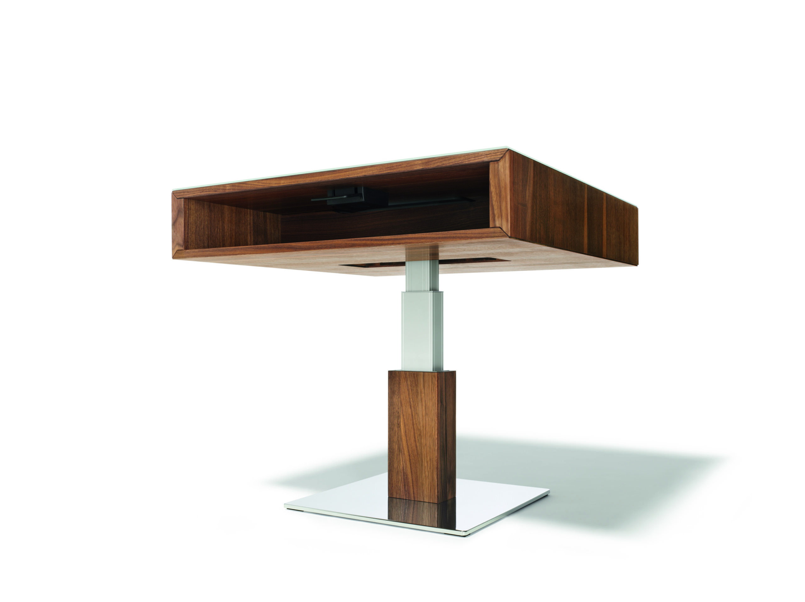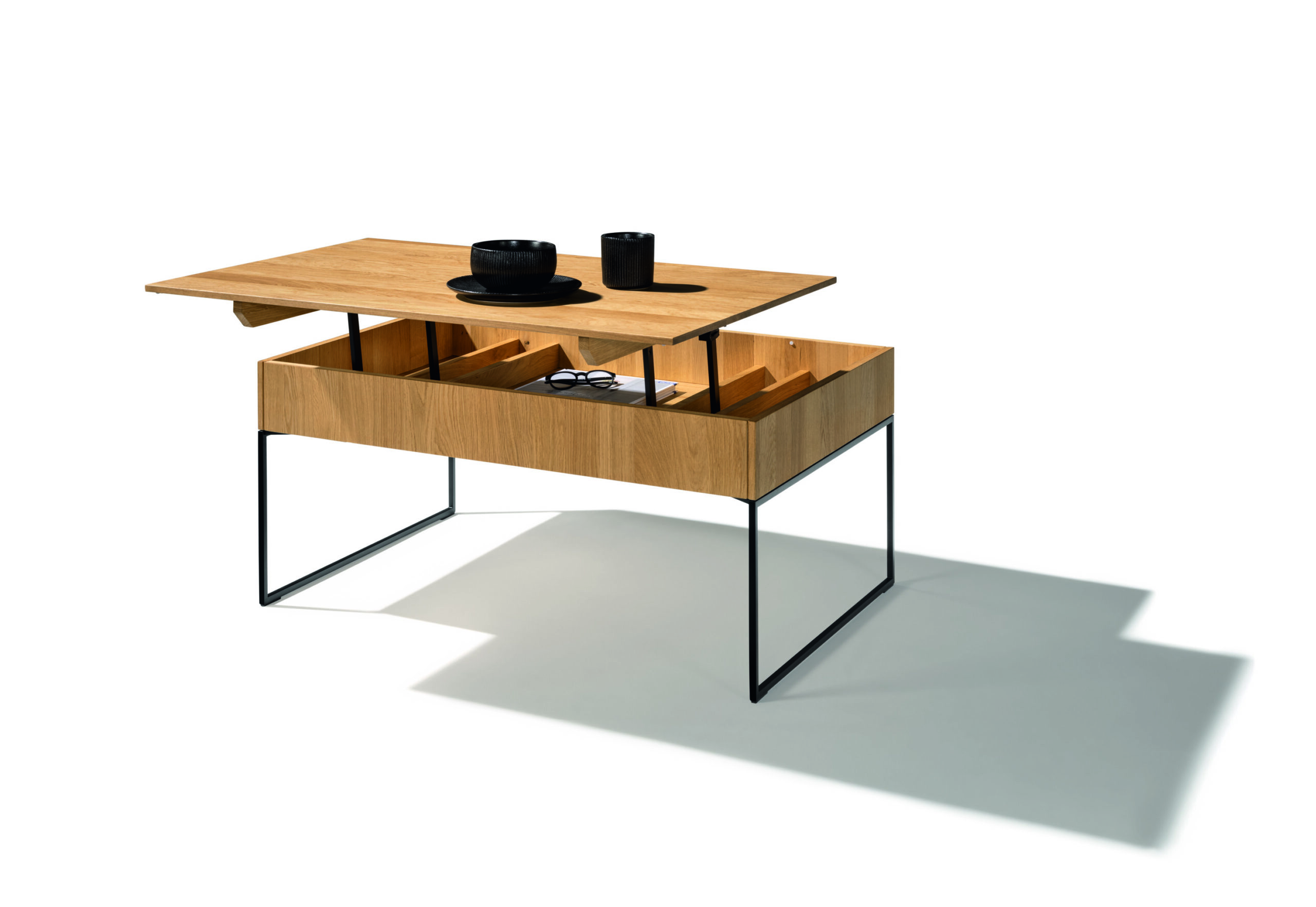 Für noch mehr Flexibilität sorgen höhenverstellbare Couchtische, die sich mit wenigen Handgriffen an die jeweilige Nutzung anpassen. Ob als Arbeitsfläche für den Laptop, als Essplatz vor dem Fernseher oder als dekorative Bühne – ihre Wandelbarkeit macht sie zum spannenden Detail im Raum. Der filigno Couchtisch greift die puristische Eleganz der gleichnamigen Kollektion auf und fügt sich mit seiner feinen Linienführung nahtlos ins Wohnambiente ein. Die anhebbare Tischplatte ist dabei präzise integriert und erweitert den Tisch um eine komfortable Funktionsebene. Der lift Couchtisch lässt sich stufenlos verstellen und passt sich so flexibel unterschiedlichen Alltagssituationen an. Auch bei diesen Modellen bleibt die Formsprache klar und die Technik dezent im Design verborgen.