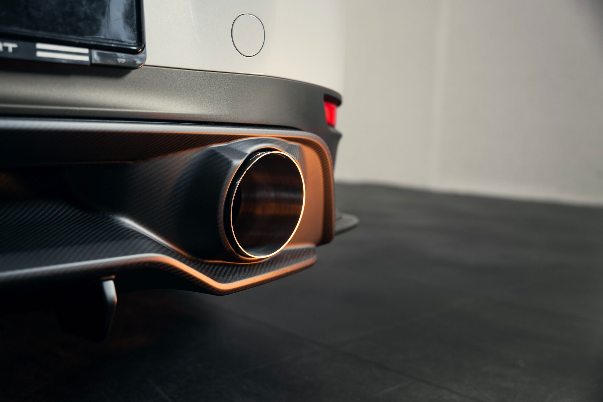Der Heckspoiler III steht für zeitloses, motorsport-geprägtes Styling und bietet eine spürbare Erhöhung des Anpressdrucks bereits im Alltagsbetrieb. Dank seiner leichten Bauweise reduziert er das Fahrzeuggewicht um 2,39 kg. Die ausgewogene aerodynamische Balance zwischen Vorder- und Hinterachse bleibt dabei in sämtlichen Geschwindigkeitsbereichen erhalten. Ergänzt wird das Aerodynamikpaket durch den Dachspoiler aus Carbon, der die sportliche Linienführung unterstreicht.