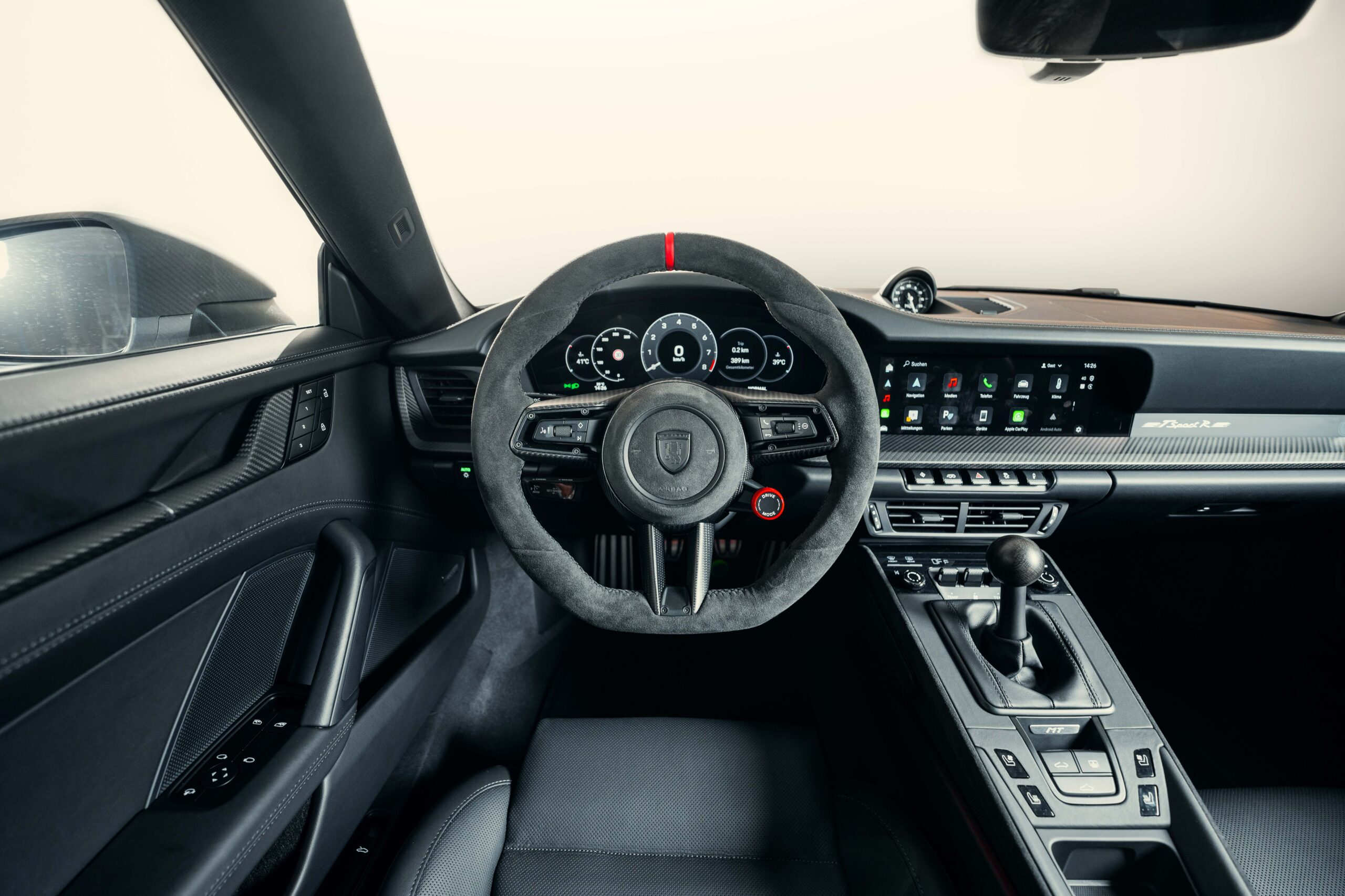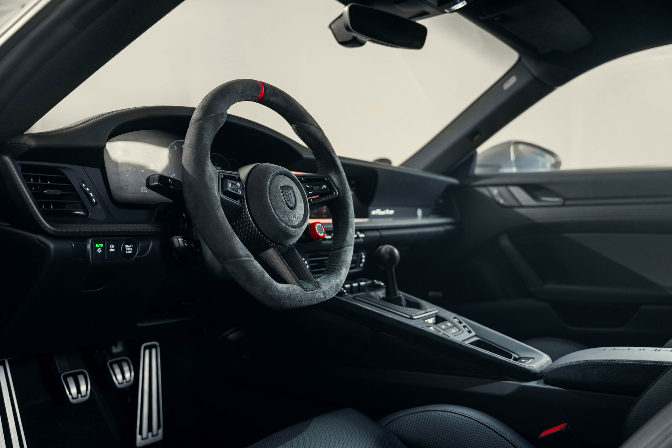 Im Innenraum wird der 911 zu einer persönlichen Leinwand. Die TECHART hauseigene Sattlerei veredelt das Interieur mit handgefertigten Details – von massgeschneiderten Leder- und Alcantara-Anwendungen über individuelle Kontrastnähte bis hin zu exklusiven Dekoroptionen.