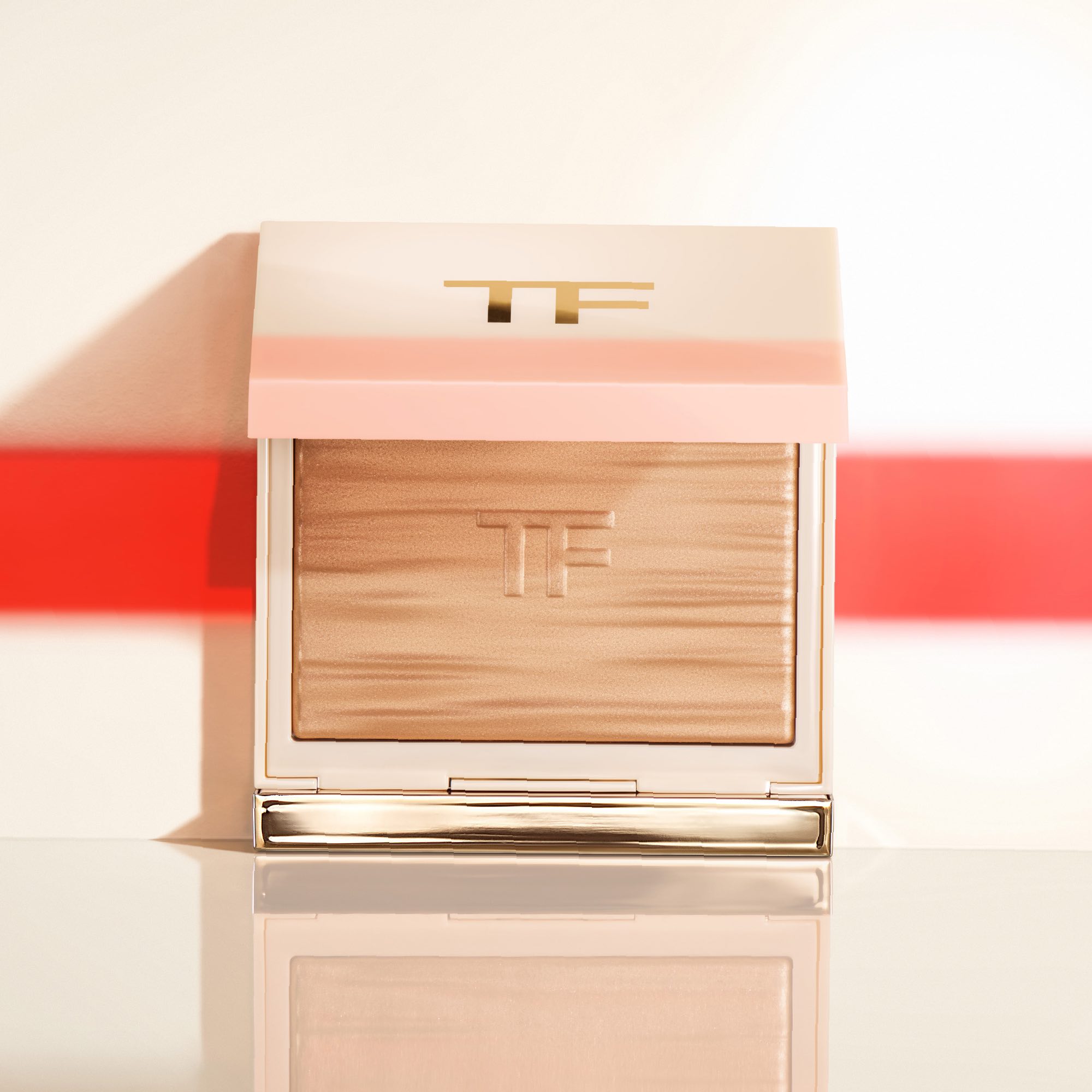 Ein transparenter, ultraleichter Gel-Puder-Highlighter, der das Licht einfängt und die natürlichen Gesichtskonturen optisch anhebt. Die aufbaubare, angenehm zu tragende Textur sorgt für einen warmen, leuchtenden Glow: