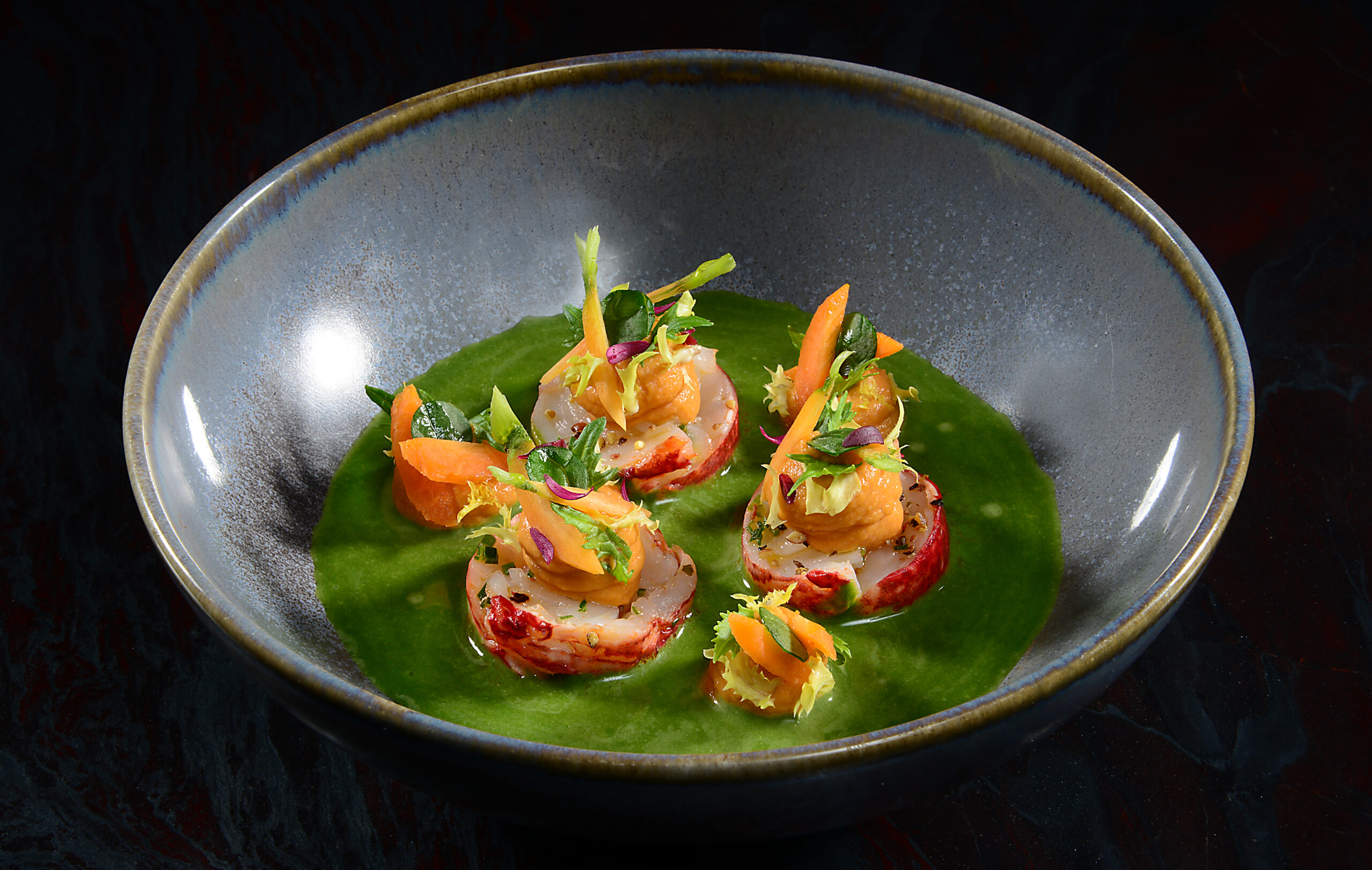 Mitten im Palmengarten, Frankfurts schönstem Park, liegt das Restaurant Lafleur in einem lichtdurchfluteten Bauhausgebäude mit hohen Decken und grosszügigen Fenstern – die perfekte Bühne für die herausragenden Kreationen von Chef Andreas Krolik. Benannt nach dem berühmten Weingut Lafleur im Pomerol, begeistert das Restaurant mit einer Küche, die Krolik selbst als «zeitgenössisch-klassisch» beschreibt. Auf dem Teller zeigt sich dies als moderne Interpretation mit tiefem Respekt für kulinarische Traditionen und handwerkliches Erbe. Als ehemaliger Gewinner der Ethical Cuisine Trophy von Relais & Châteaux spielt Nachhaltigkeit eine zentrale Rolle. So bietet das Degustationsmenü auch eine rein pflanzliche Variante, treffend benannt als «Ethical Vegan Cuisine». Auch als Experte für Fisch und Meeresfrüchte bekannt, verleiht Krolik dem spanischen Carabinero – der roten Tiefseegarnele – eine fast schwebende Leichtigkeit: serviert mit Wermut-Schaum, pikanten Karotten und Zitronenkonfit. Die feine Balance aus subtiler Süsse und milder Säure zieht sich durch das gesamte Menü – etwa bei Makrele mit einem Dashi-artigen Sud und Auberginencreme. «Für mich geht es in der Küche darum, ein Gleichgewicht zu schaffen zwischen Aromen, Texturen und vor allem Nachhaltigkeit. Jedes Gericht erzählt eine Geschichte von Respekt gegenüber der Natur und dem Handwerk, mit dem Ziel, unvergessliche Genussmomente für unsere Gäste zu schaffen», erklärt Chef Andreas Krolik.