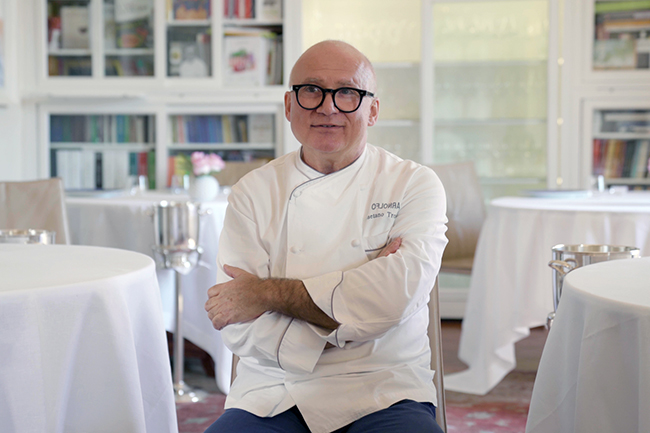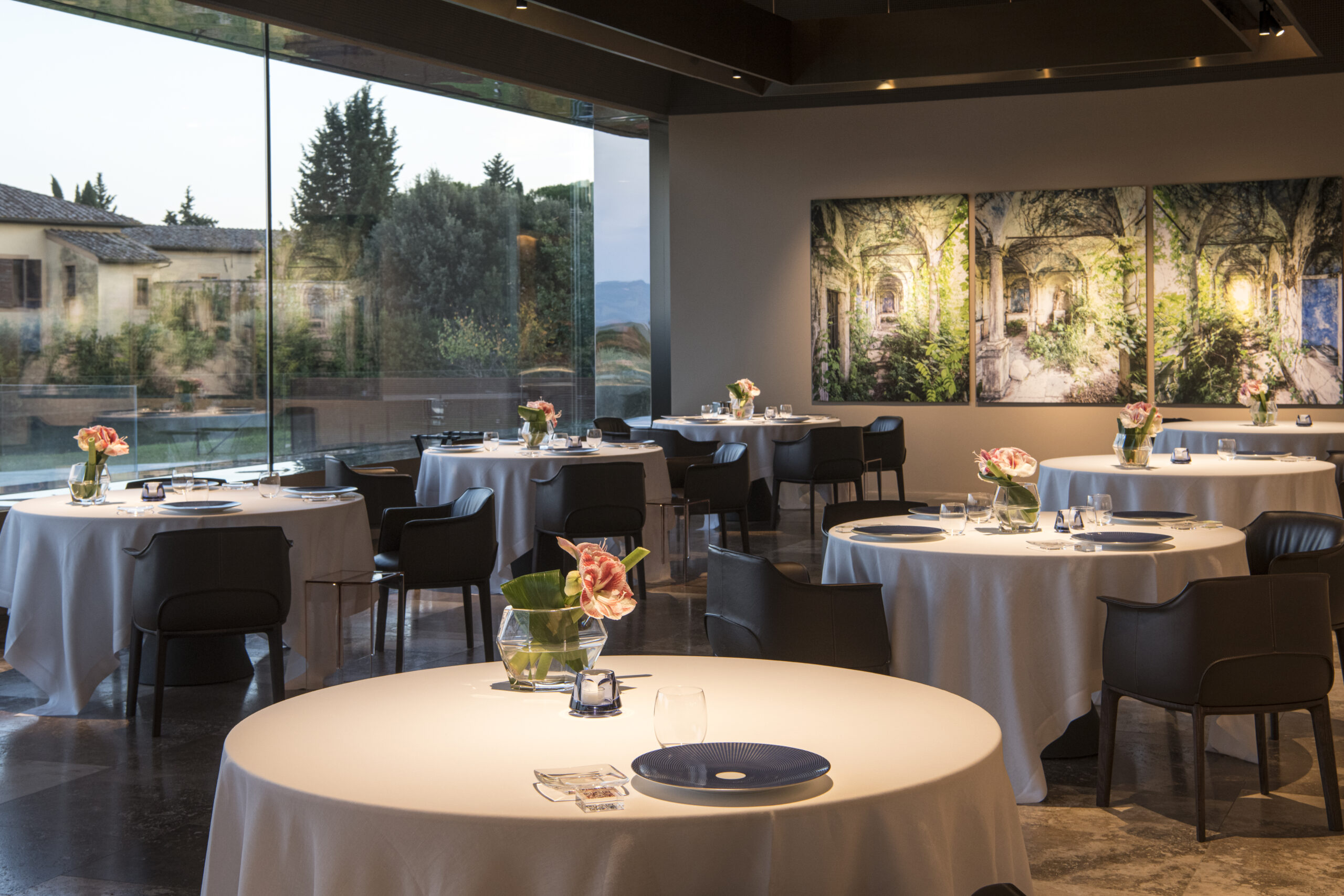 Ein modernes Gebäude aus Glas, Marmor und Eisen, entworfen von den Brüdern Trovato, ist seit 2022 das Zuhause des Arnolfo Ristorante. Doch der Geist des über 40 Jahre alten Hauses bleibt fest in der toskanischen Tradition verwurzelt. Hoch über den mittelalterlichen Dächern von Colle di Val d’Elsa gelegen, leitet Chef Gaetano Trovato hier ein engagiertes Küchenteam in einer offenen Küche, eingefasst von gelbem Siena-Marmor. Gemeinsam kreieren sie Menüs, die den Reichtum der Region widerspiegeln. Die Küche von Chef Trovato basiert auf drei Verkostungsrichtungen – Fleisch, Fisch und Gemüse – und interpretiert italienische Zutaten mit saisonaler Präzision. Die Gerichte betonen lokale Aromen und können je nach Jahreszeit etwa frische Plin-Pasta mit Ente aus dem nahe gelegenen Valdarno enthalten, verfeinert mit Portwein und Kichererbsen. Auch Meeresprodukte von der italienischen Küste finden ihren Platz auf der Karte, etwa Wolfsbarsch mit Pastinake, Limette und rosa Grapefruit. Ein Dessert aus Schokolade, Blutorange und Rum rundet das Menü ab, begleitet von einer umfangreichen Weinkarte mit starkem Fokus auf Weingüter, die das Weinbauerbe des Landes zelebrieren. «Als Koch lasse ich mich vom Land und seinen Gaben inspirieren, um eine Küche zu gestalten, die in die Zukunft blickt und gleichzeitig die Tradition ehrt. Italien bietet eine unglaubliche Vielfalt an Zutaten von Nord bis Süd. Unsere Aufgabe ist es, diese Aromen mit Respekt und Präzision hervorzuheben», so Chef Gaetano Trovato.
