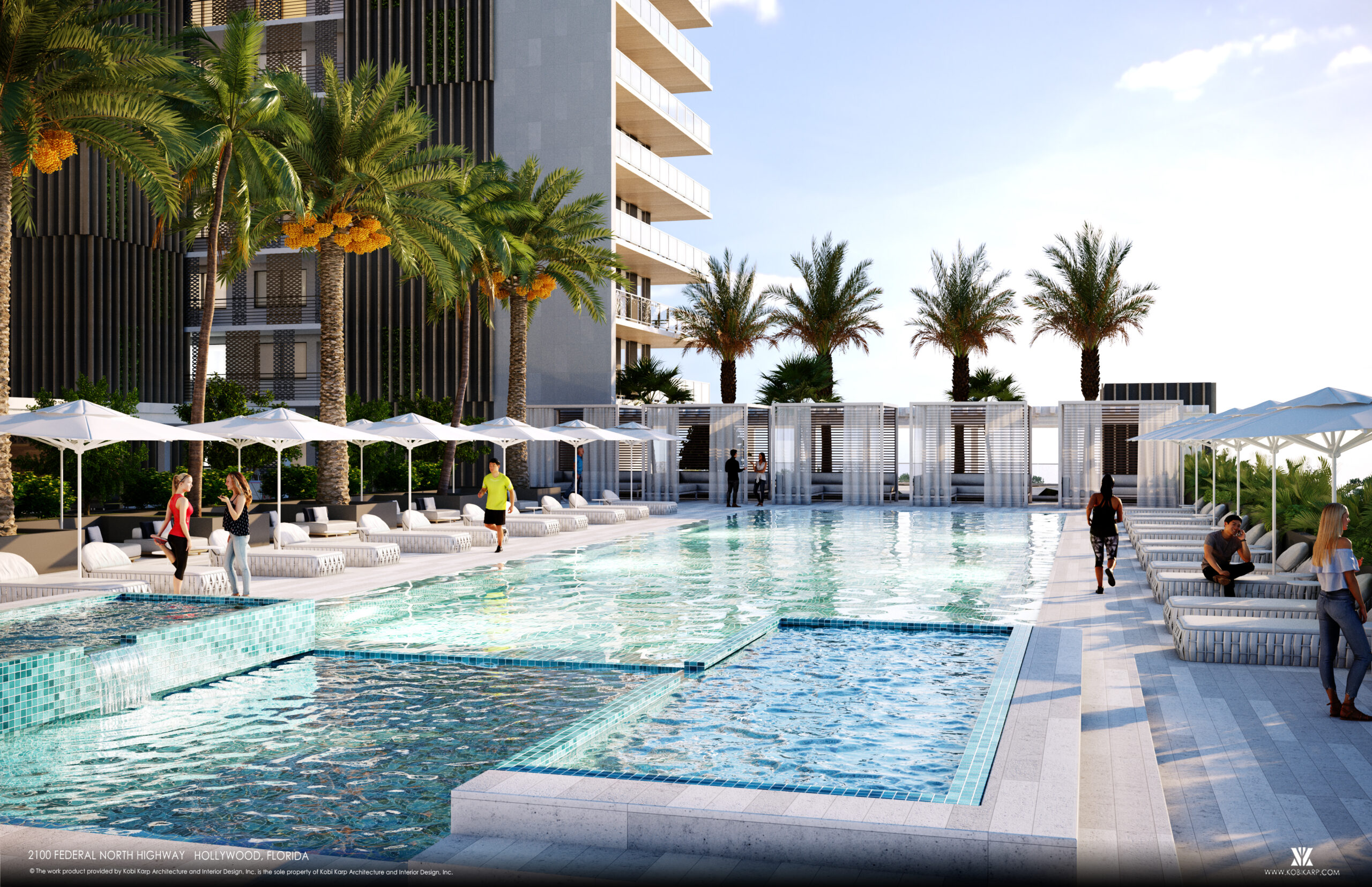Der markante 21-stöckige Luxusturm bringt eine neue architektonische Präsenz in die sich entwickelnde Skyline Hollywoods und verbindet zeitgenössisches Design mit gastfreundlichkeitsorientierten Annehmlichkeiten, die die Grenzen zwischen Privatwohnung und Resortleben verwischen.