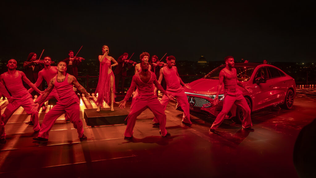 Bei der exklusiven Weltpremiere tauchten die geladenen Gäste in eine extravagante Erlebniswelt ein, die vom lebendigen Stil, der reichen kulturellen Vielfalt und der Schönheit des italienischen Lebens inspiriert war. Nach den Musik- und Tanzdarbietungen richteten sich alle Augen auf die Stars der Show: verschiedene Versionen des CLA, die kunstvoll auf der Terrasse mit Blick auf die funkelnden Lichter Roms arrangiert waren.